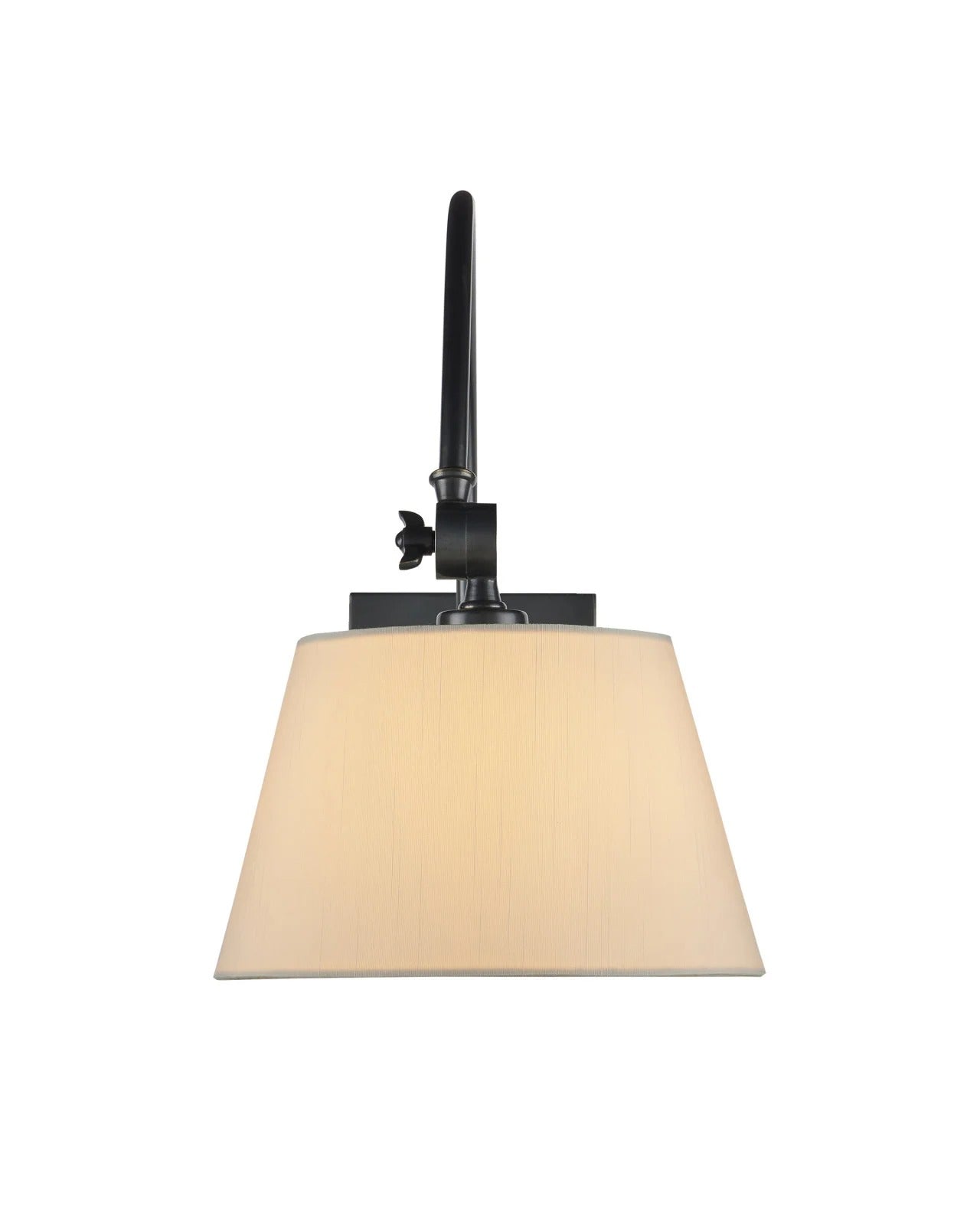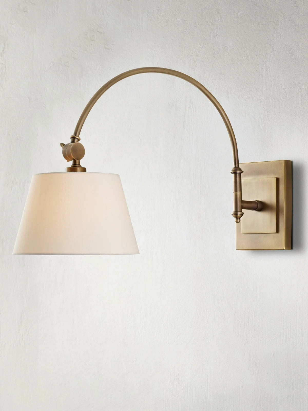 The Ashby Swing-Arm Wall Sconce is a timeless lighting essential designed for bedrooms, libraries, and reading nooks. Its classic swing-arm silhouette allows you to direct light exactly where you need it, while the tailored fabric shade softens the glow for a warm, inviting feel.