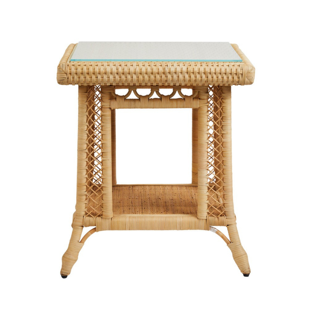 A tempered glass top provides a polished finish while preserving the natural beauty of the rattan weave below. Whether used as a pair for symmetry or solo for a focal accent, this table adds refined warmth and casual sophistication to your space.
