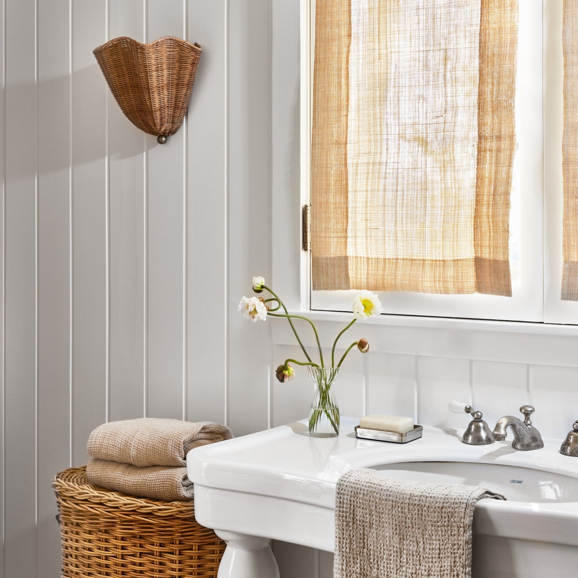 Inspired by the charm of seaside escapes, the Ravello Wall Sconce brings organic texture and sculptural detail to any room. Its handwoven wicker scallop shade softens light while adding artisanal elegance.