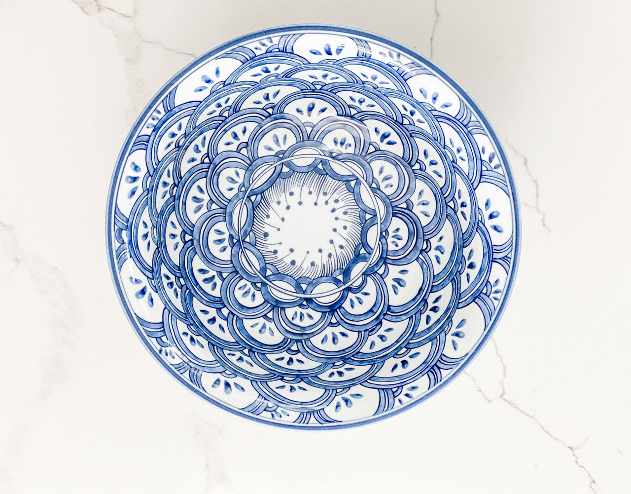 The Brighton Blue and White Porcelain Bowl brings a timeless sense of ease to the table and home. Finished in a classic blue and white palette with a rhythmic, hand painted motif, this piece feels both collected and enduring. Its generous, large scale and deep profile make it as practical as it is beautiful, whether styled for everyday living or special gatherings.