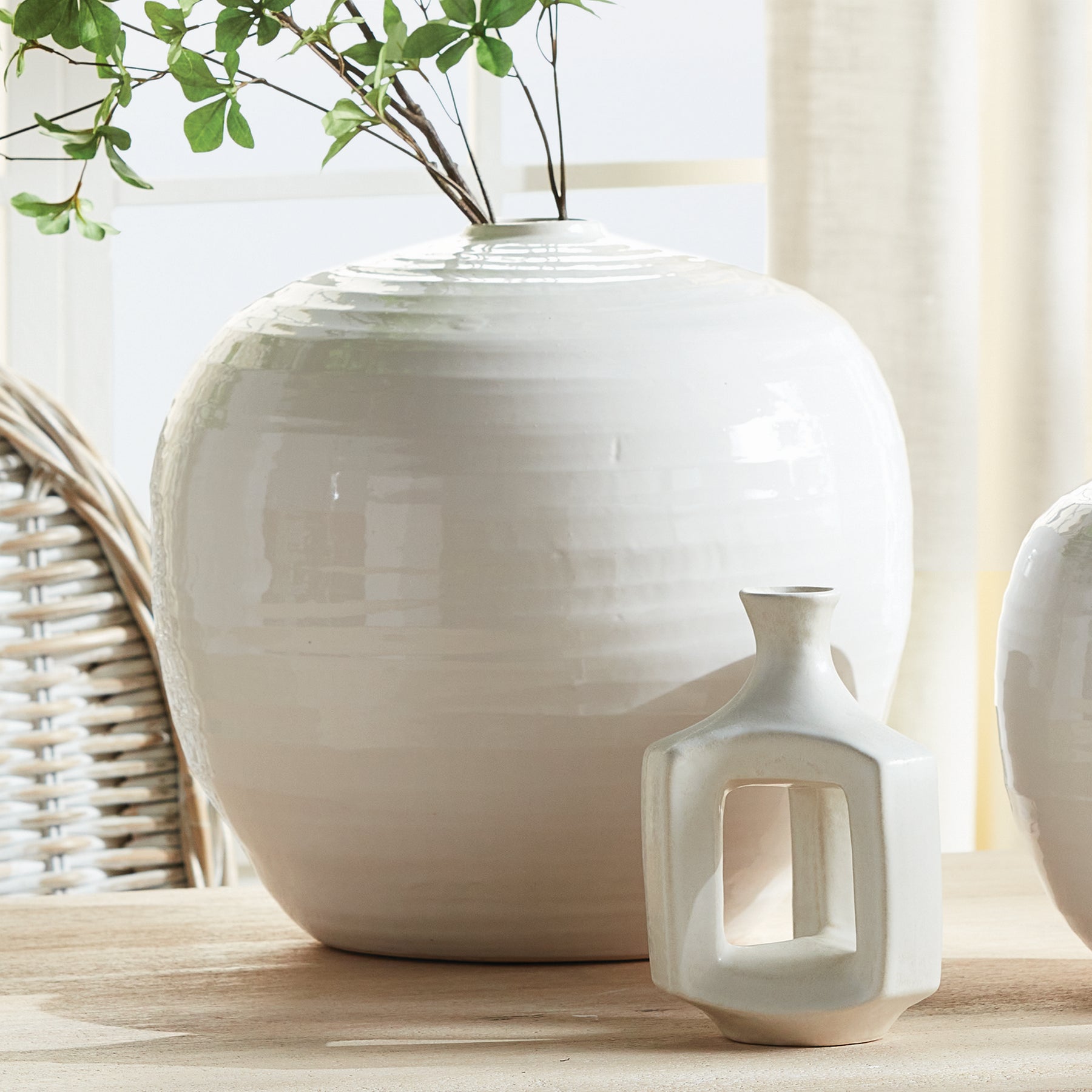 The Emerson Vase brings understated elegance to any room with its rounded silhouette and softly reactive glaze. Hand-finished in a warm oatmeal hue, this terracotta vessel is designed for versatility—perfect for showcasing tall stems, a single branch, or styled beautifully on its own as sculptural décor.