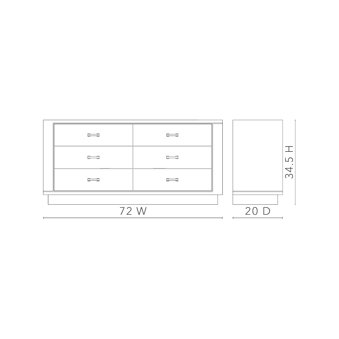 - 72"W x 20"D x 34.5"H · 255 lbs