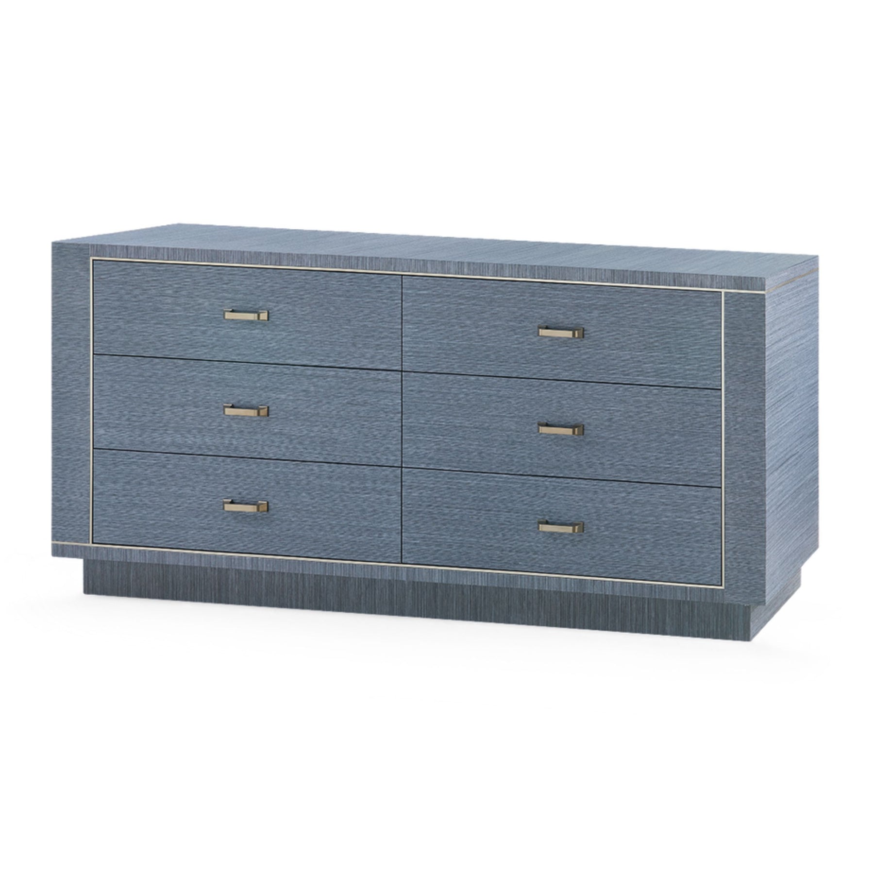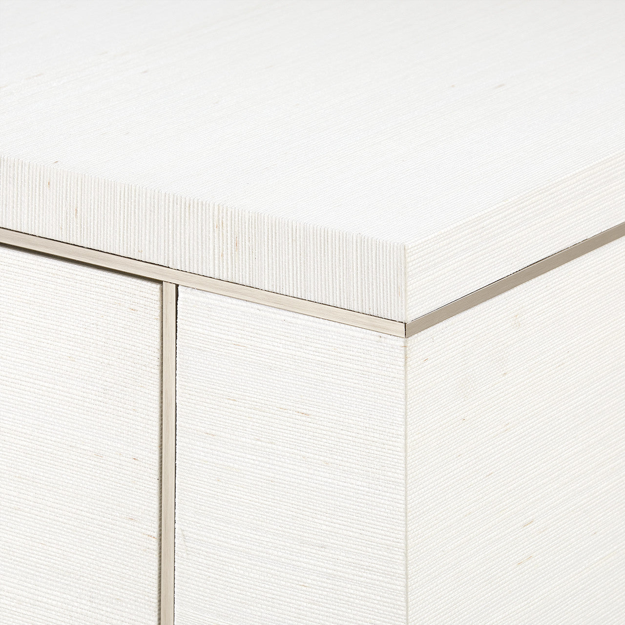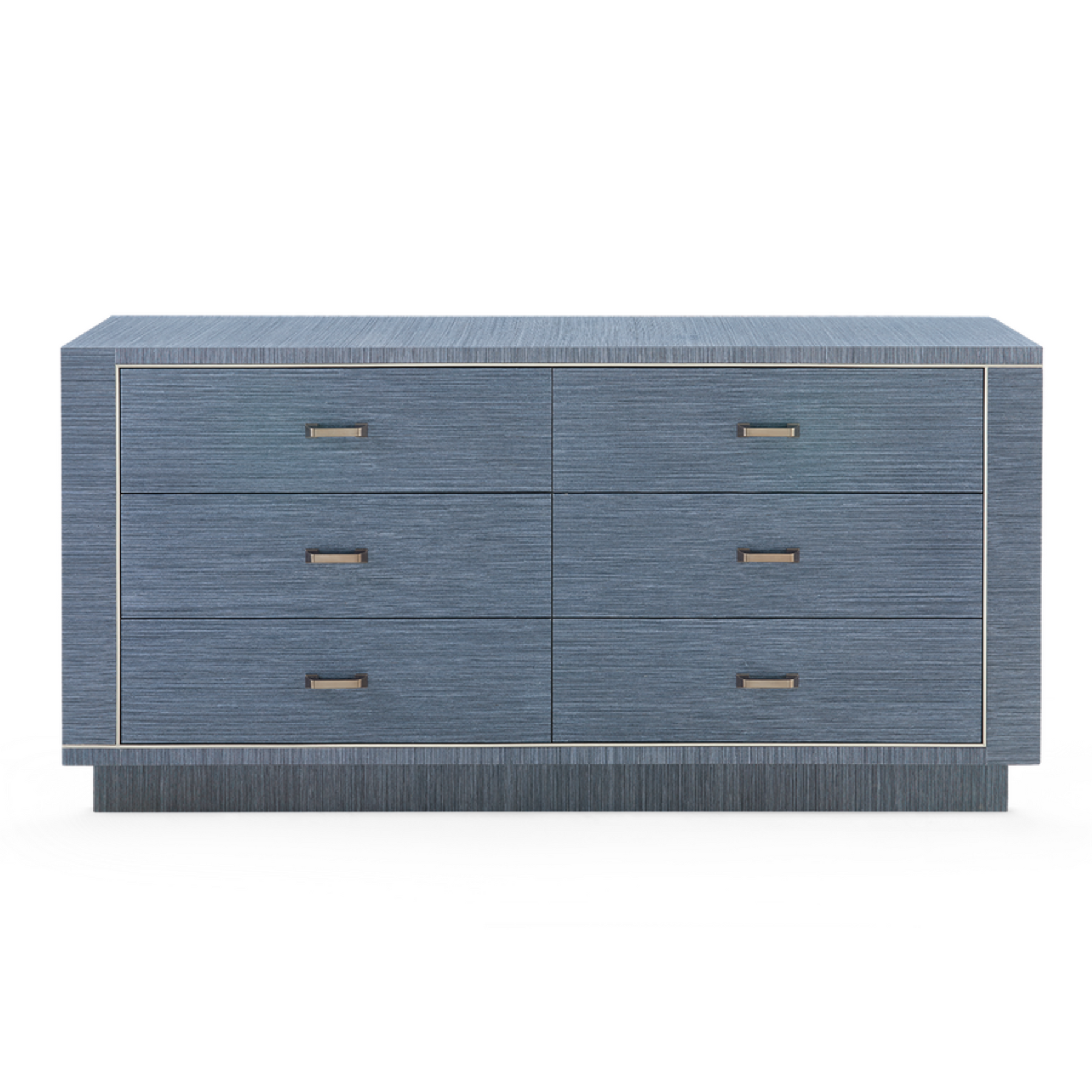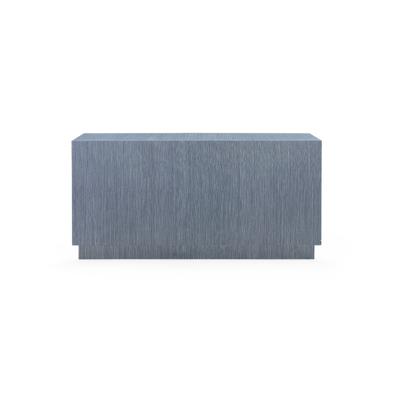 Lacquered grasscloth in Navy or Sand White. 72"W x 20"D x 34.5"H.