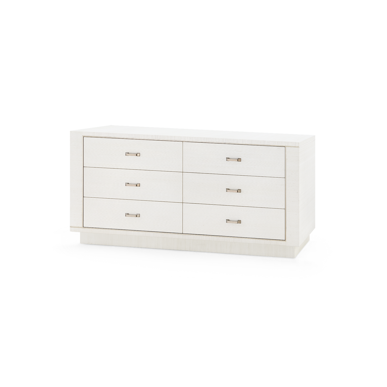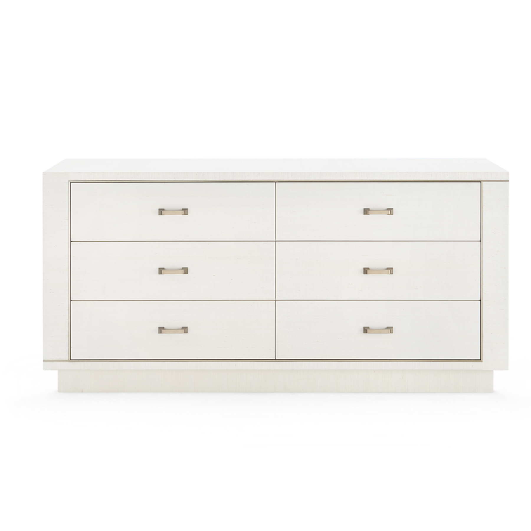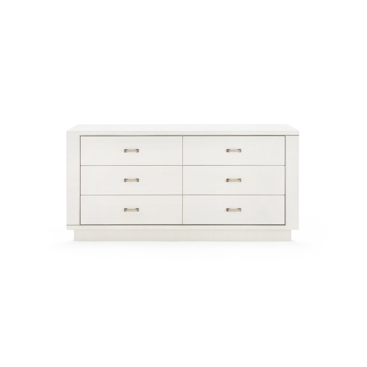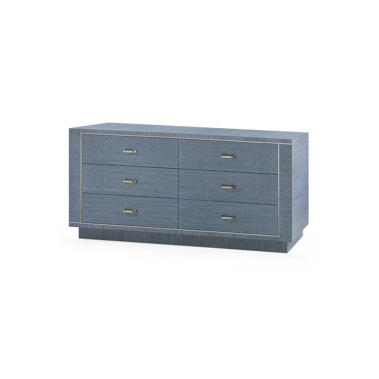 Lacquered grasscloth in Navy or Sand White. 72"W x 20"D x 34.5"H.