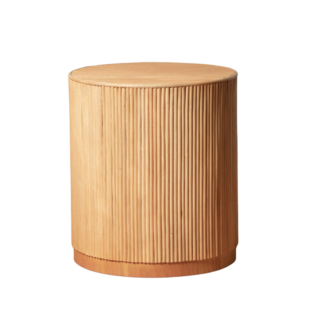 Handcrafted of sustainably harvested pencil pole rattan with white cedar wood detailing, each table bears unique character in tone and grain. Compact yet weighty, Gabriella is designed to bring warmth and grounding presence to any corner of the home.