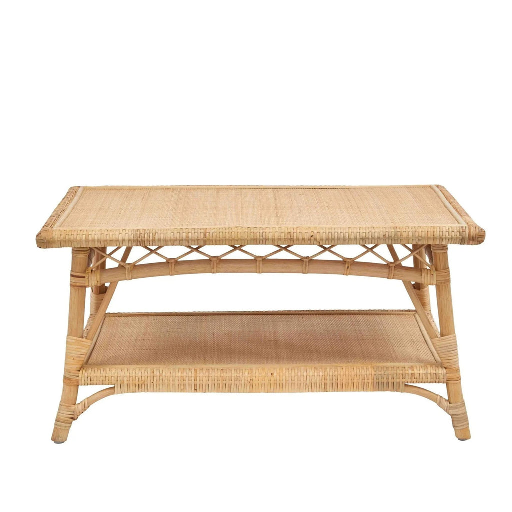 The Charleston Coffee Table brings an effortless coastal warmth to any living space with its beautifully handwoven natural rattan and airy open-shelf design. Its generous tabletop and lower shelf offer both style and function—perfect for books, baskets, or a simple vase of fresh greens.