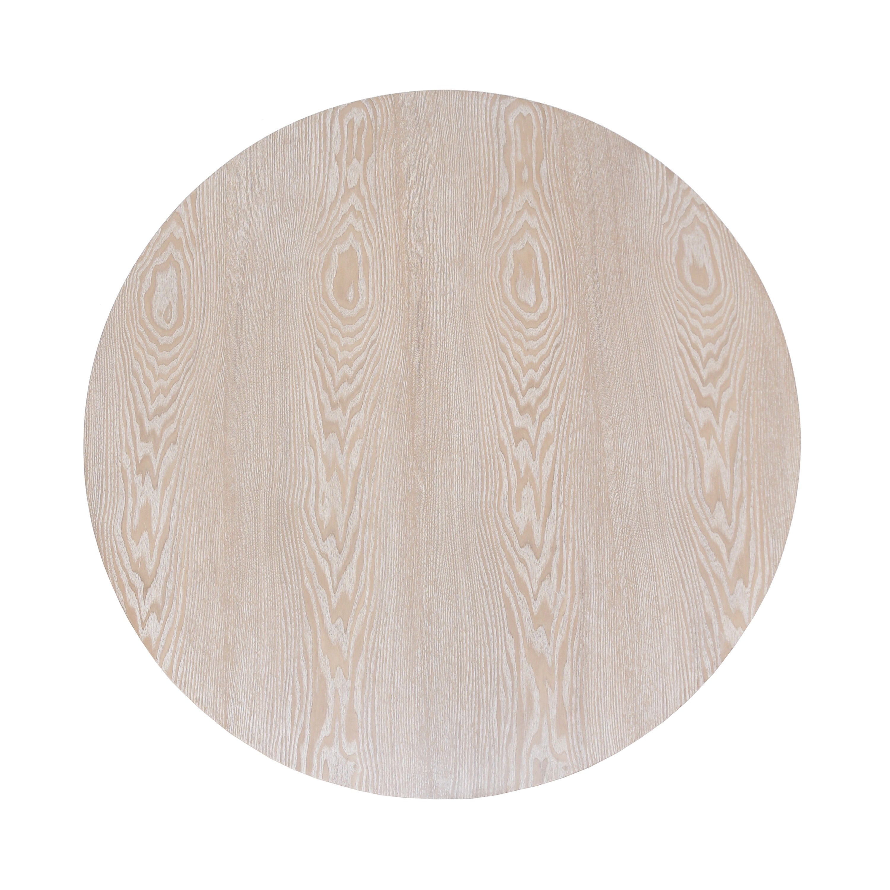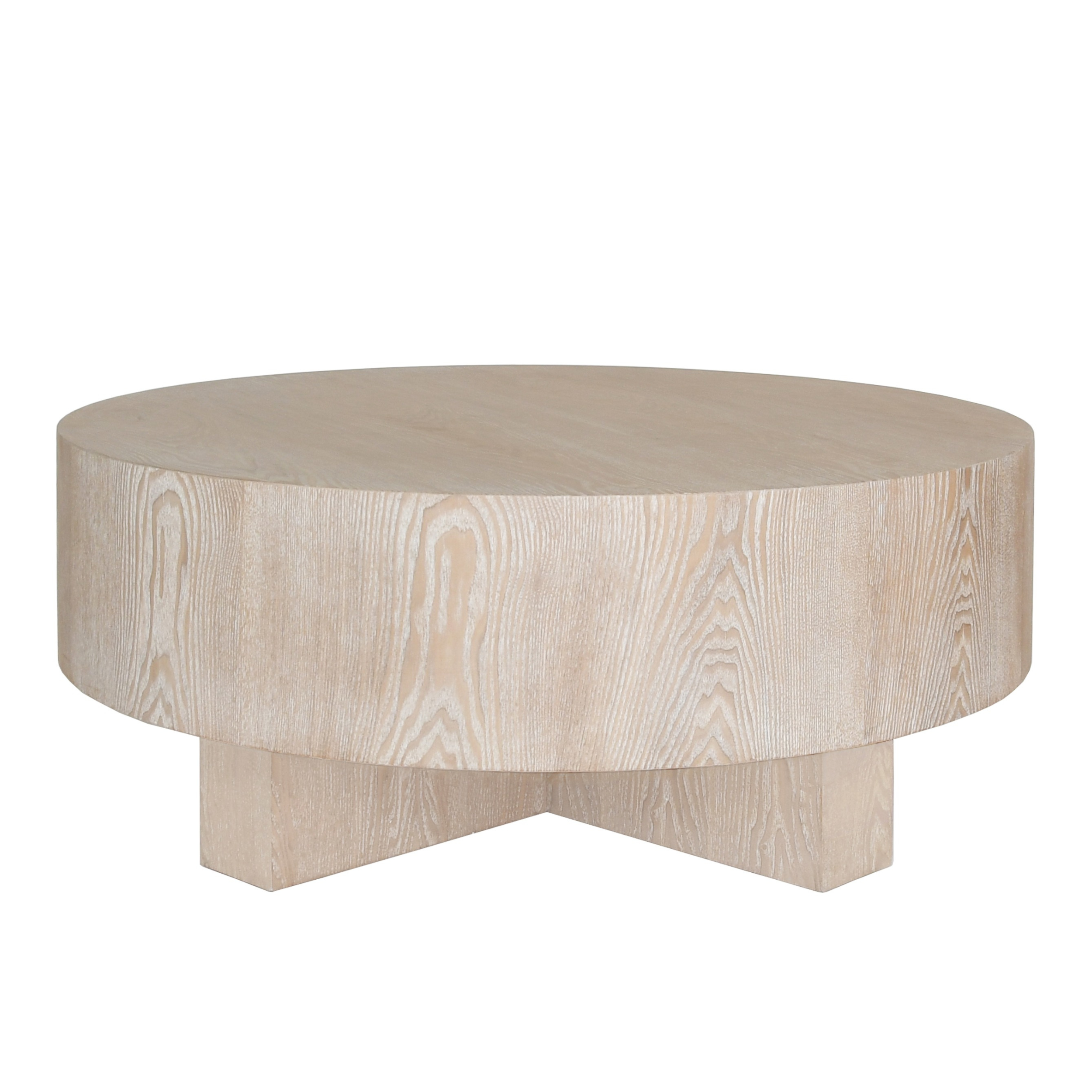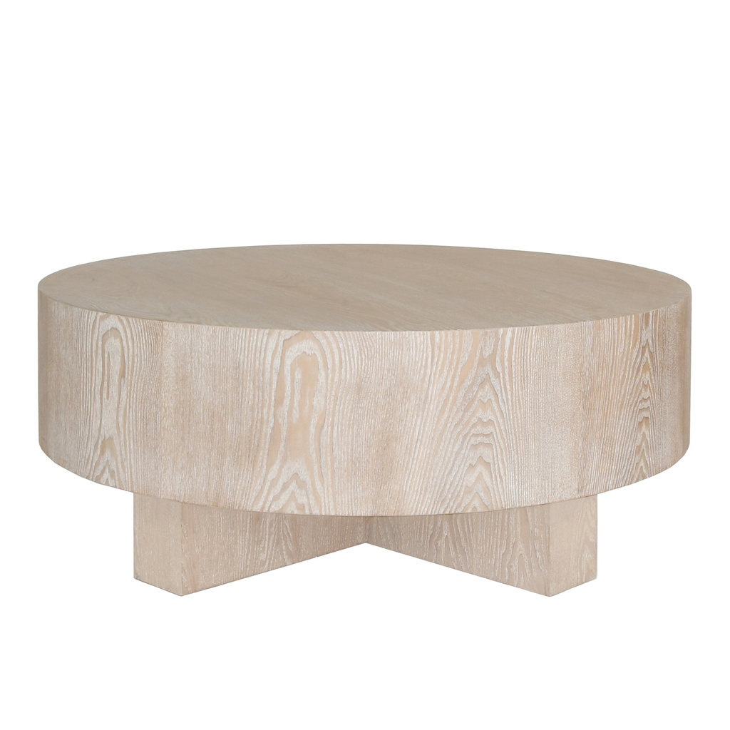 The Soren Coffee Table brings sculptural presence with a softened, timeless feel. Crafted in light cerused oak, its thick round top highlights the natural grain of the wood while the cross base adds subtle architectural interest without feeling modern or stark.