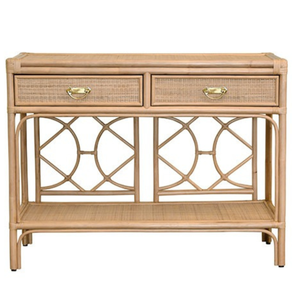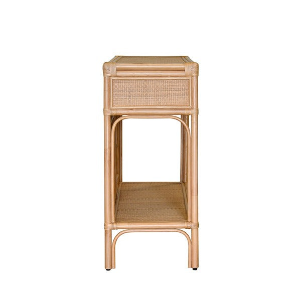 The Harborview Console Table brings relaxed coastal structure to entryways, living spaces, and dining rooms alike. Crafted in woven rattan with a softly architectural frame, it balances natural texture with tailored lines for an elevated yet effortless look.