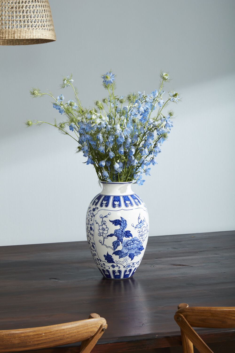 Timeless and elegant, the Devonshire Collection brings heritage-inspired charm to your home. Each vase features hand-painted blue floral motifs against a crisp white ground, evoking the refinement of classic English chinoiserie with a coastal sensibility. With its graceful silhouette and rich tonal variation, the Devonshire Collection is equally suited for formal arrangements or everyday styling.