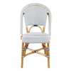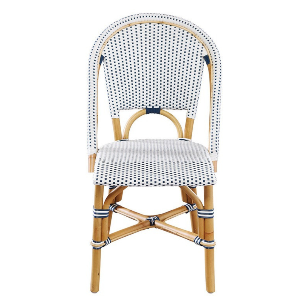 A fresh take on classic French bistro style, the Riviera Bistro Side Chair brings charm, texture, and timeless character to any space. Crafted with a natural rattan frame and woven in a crisp navy-and-white pattern, it offers the perfect balance of casual coastal style and everyday durability. Lightweight yet sturdy, it suits everything from kitchen breakfast nooks to covered outdoor dining spaces.