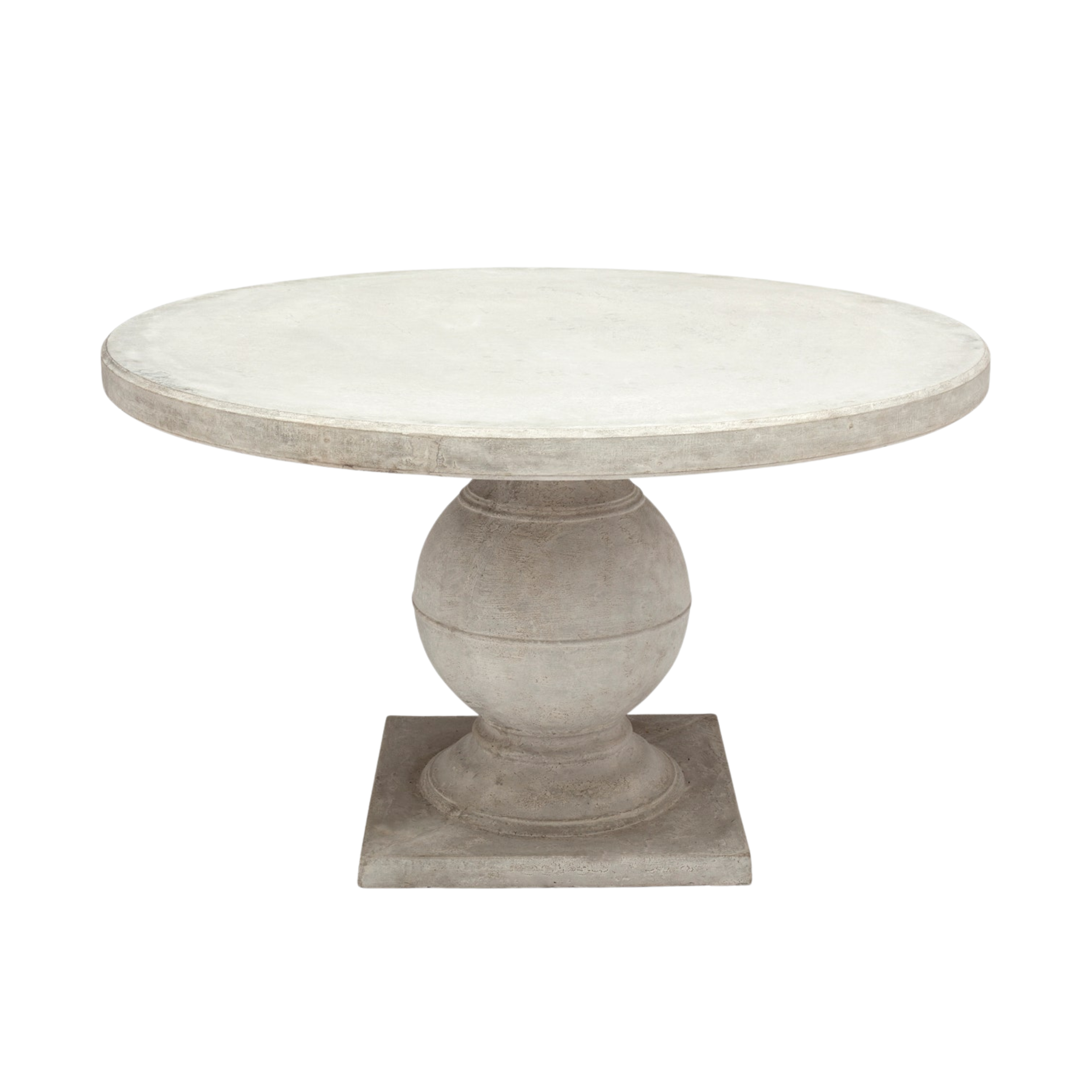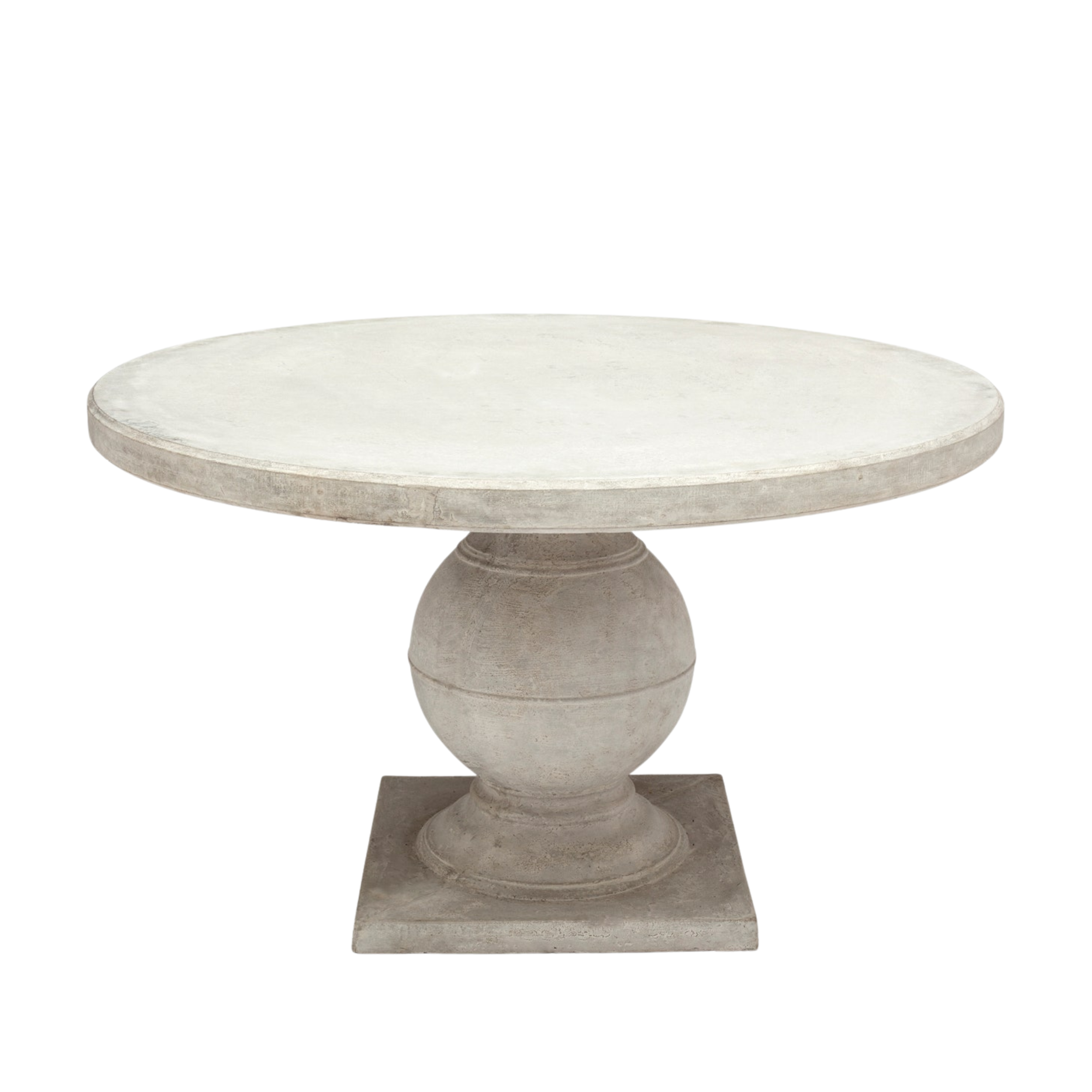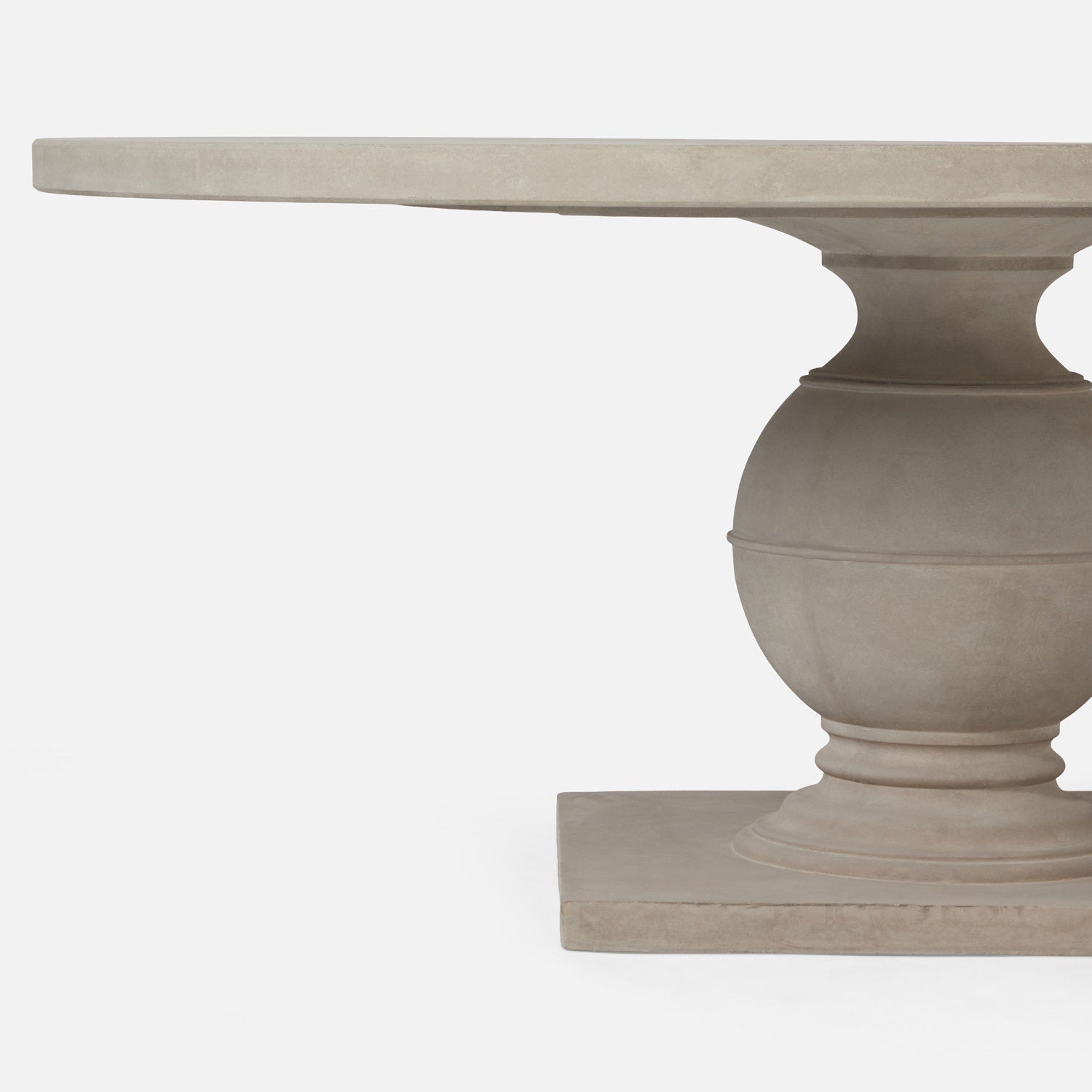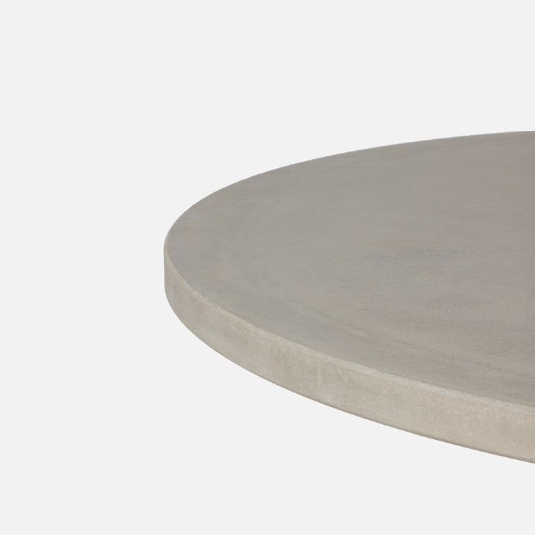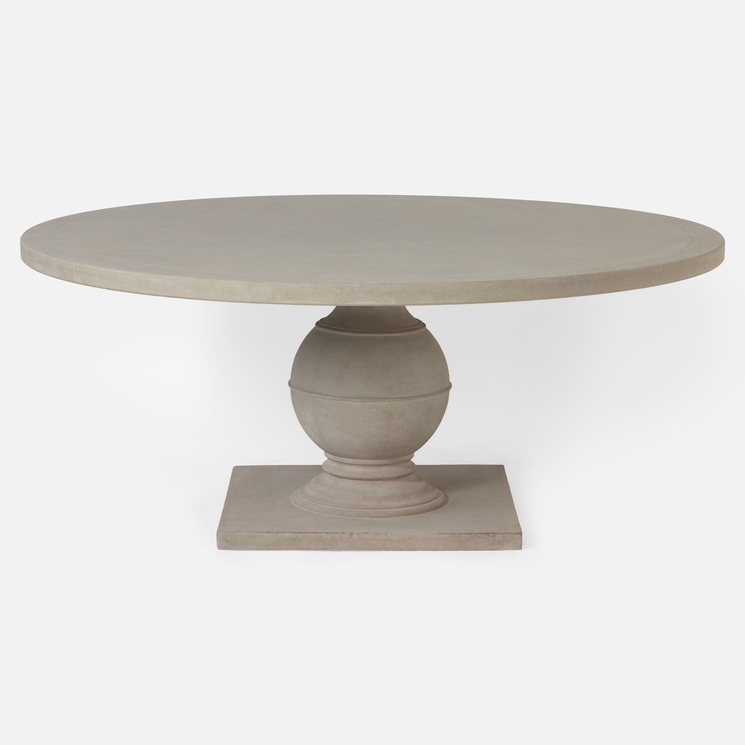 The Bronte Dining Table brings timeless balance to the dining room with its sculptural pedestal base and softly rounded silhouette. Crafted in light gray reconstituted stone, its gently textured surface adds depth and quiet character while maintaining a refined, collected look that feels both classic and fresh.