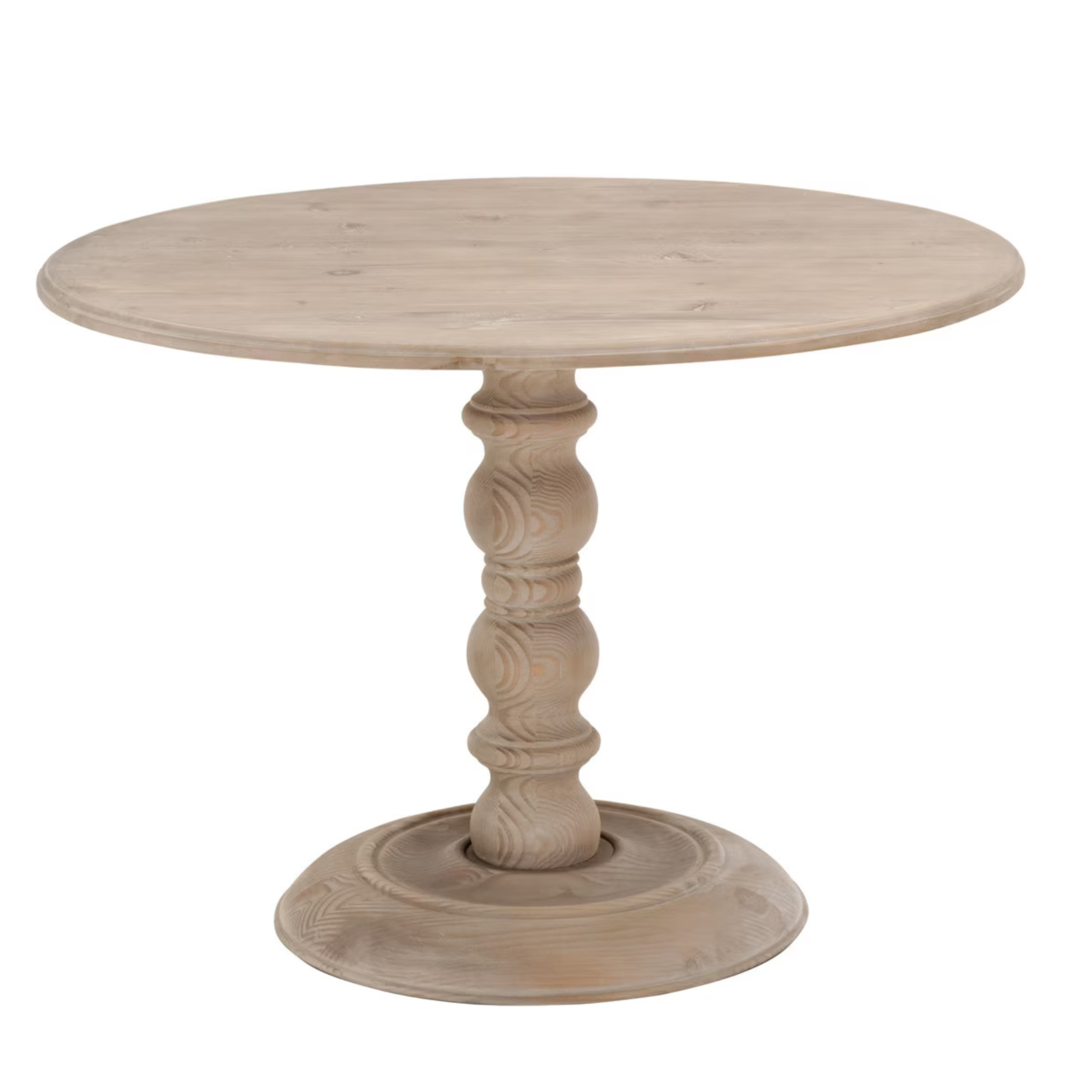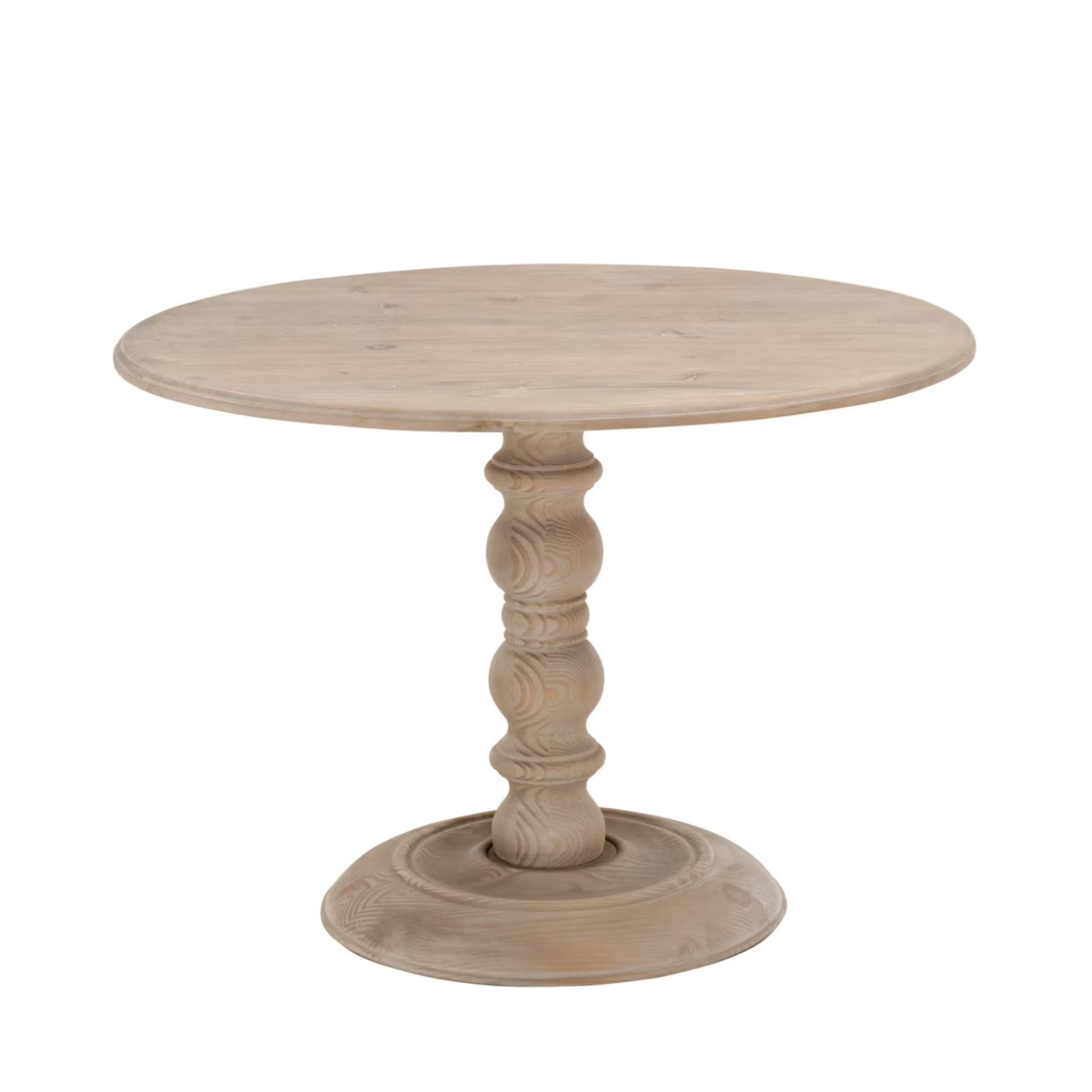• Pedestal Base: Turned solid wood