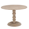 The Chelsea Dining Table brings a soft, classic presence to everyday dining. Its turned pedestal base and gently rounded top create a welcoming silhouette that feels equally at home in a sunlit breakfast nook or a cozy kitchen corner. Finished in a light, time worn white, it adds warmth without feeling precious.