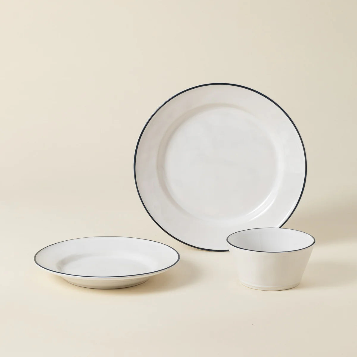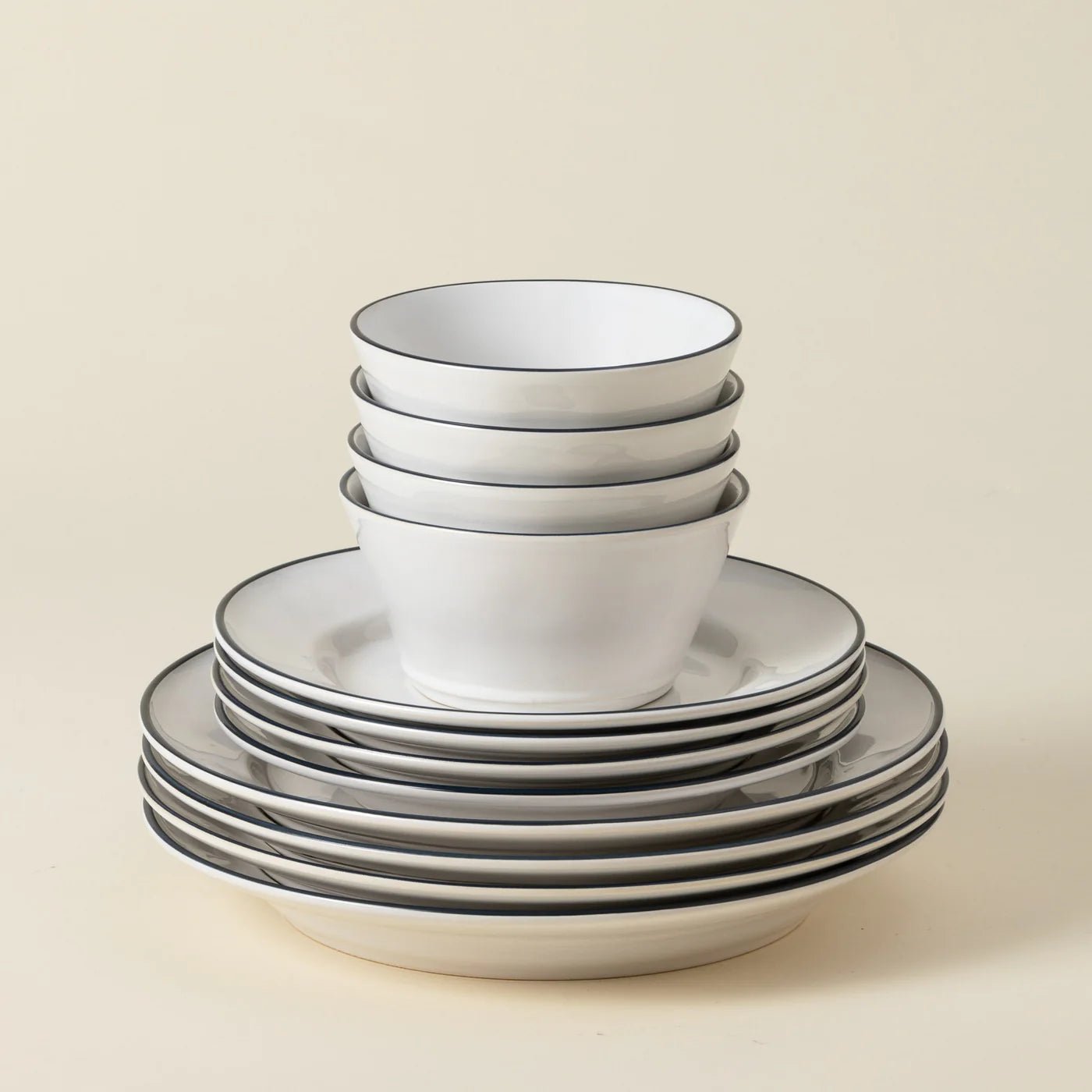 Inspired by traditional enameled tableware, the Beja collection is designed to be versatile, durable, and effortlessly stackable. This set includes four full place settings, each with a dinner plate, salad plate, and soup/cereal bowl, making it ideal for family meals, special occasions, or creating a beautiful layered tablescape.