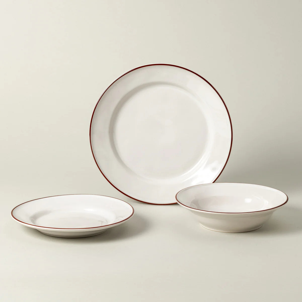 Beja 12-Piece Dinnerware Set with Soup/Pasta Plate - White with Red