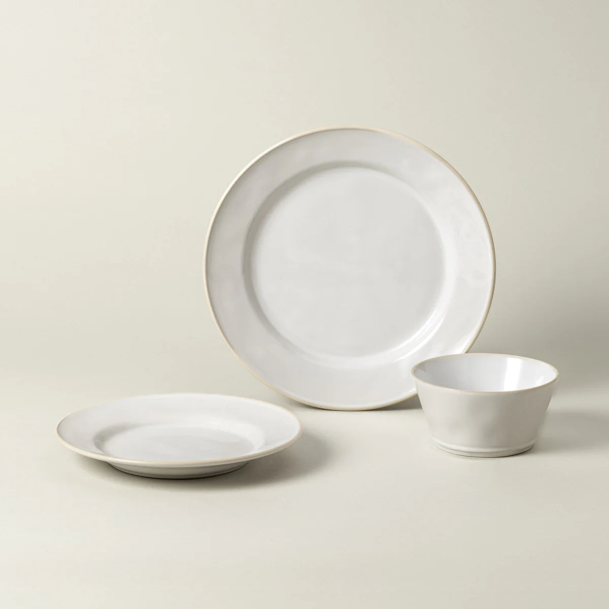 Inspired by the sun-warmed architecture of Beja, this 12-piece dinnerware set brings a touch of Portuguese heritage to everyday meals. Each piece features a softly curved profile and a cream hand-painted rim—an artisanal detail that feels both timeless and quietly elevated. Crafted in Portugal from fine stoneware, it’s made to pair naturally with your Modern Cottage table.