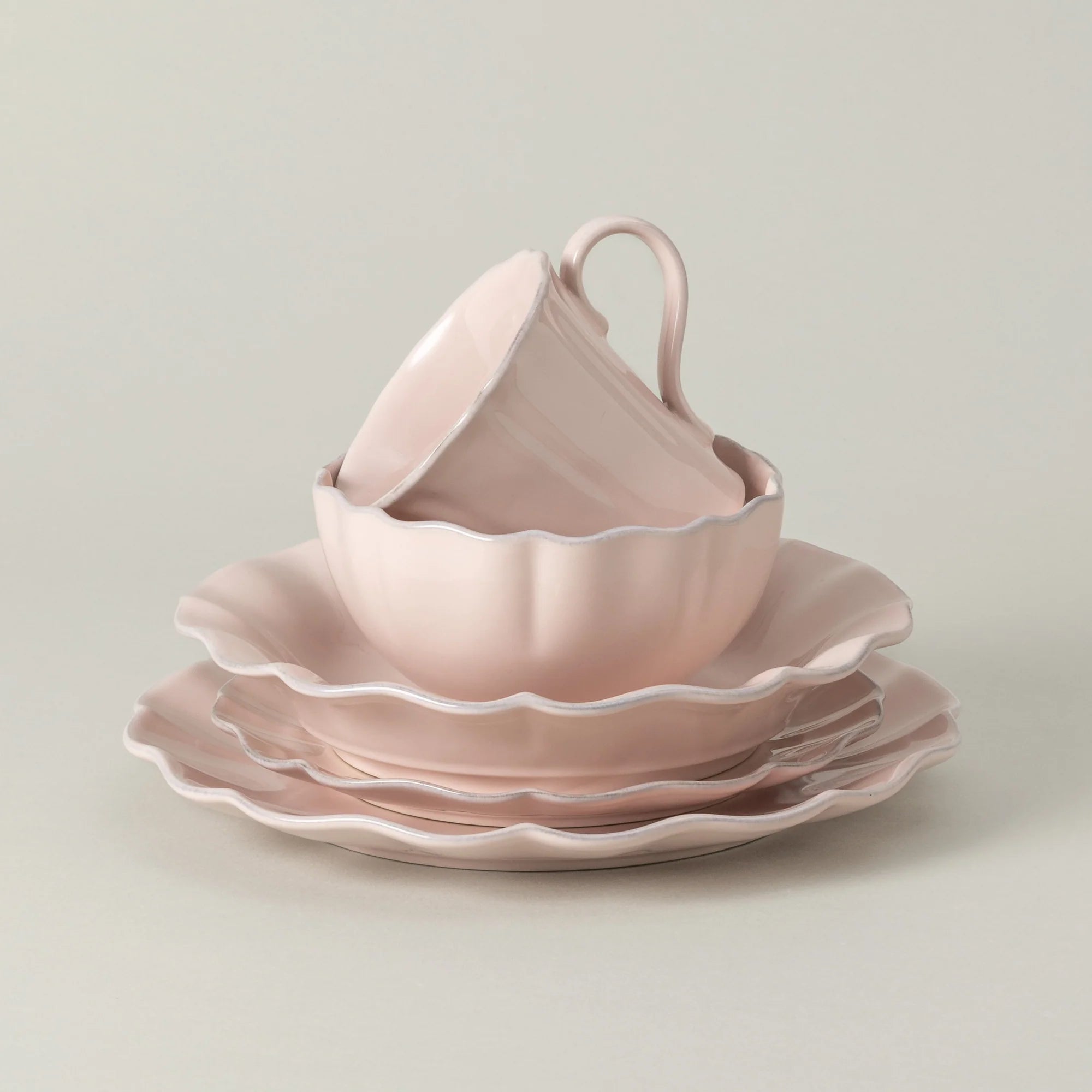 The Rosa 5-Piece Dinnerware Set brings a soft, European elegance to everyday dining. Crafted in Portugal by Costa Nova, each piece features the collection’s signature gentle relief and subtle, romantic curves. The Rosé Pink colorway adds a graceful touch that feels both refined and inviting, perfect for casual meals or more styled tabletop moments.