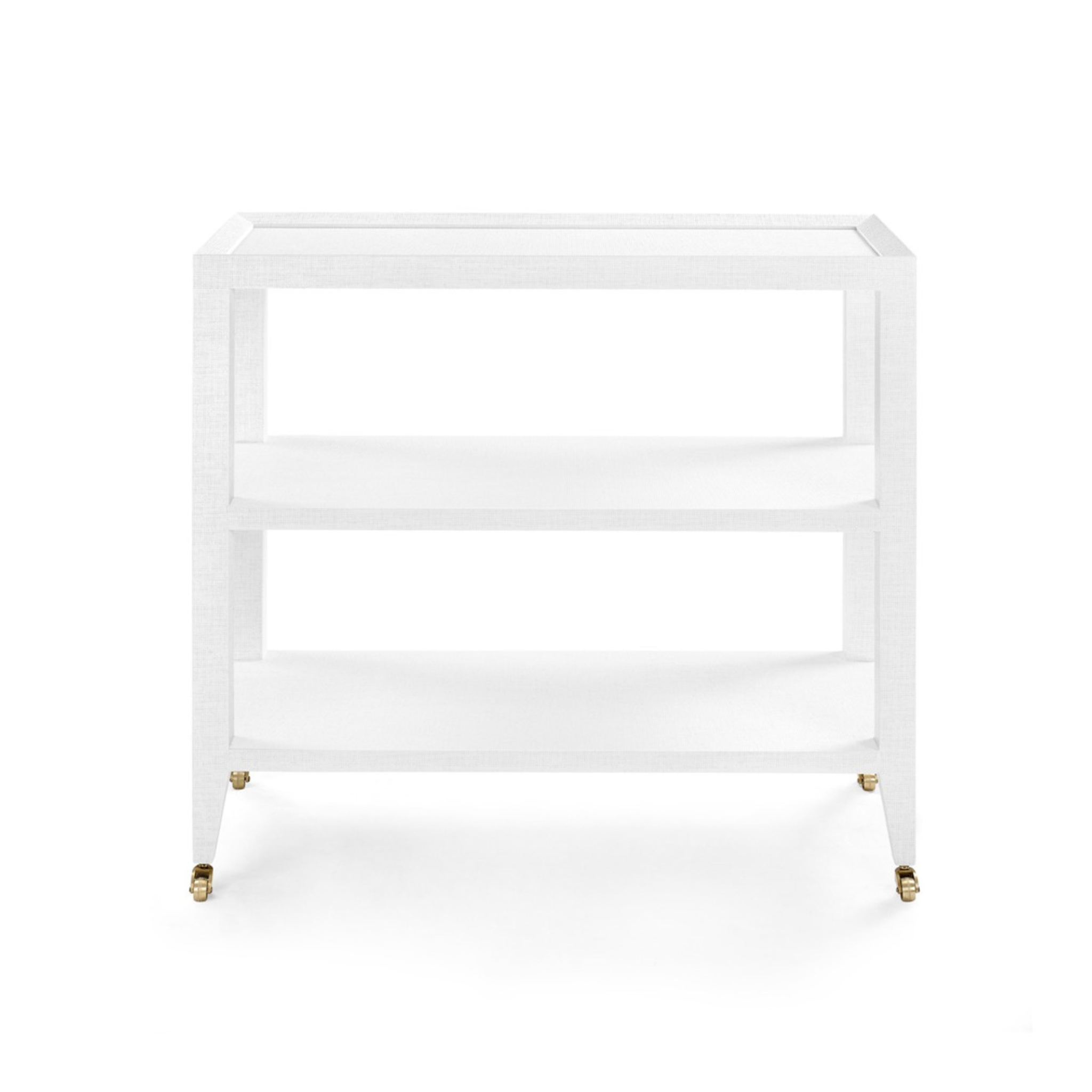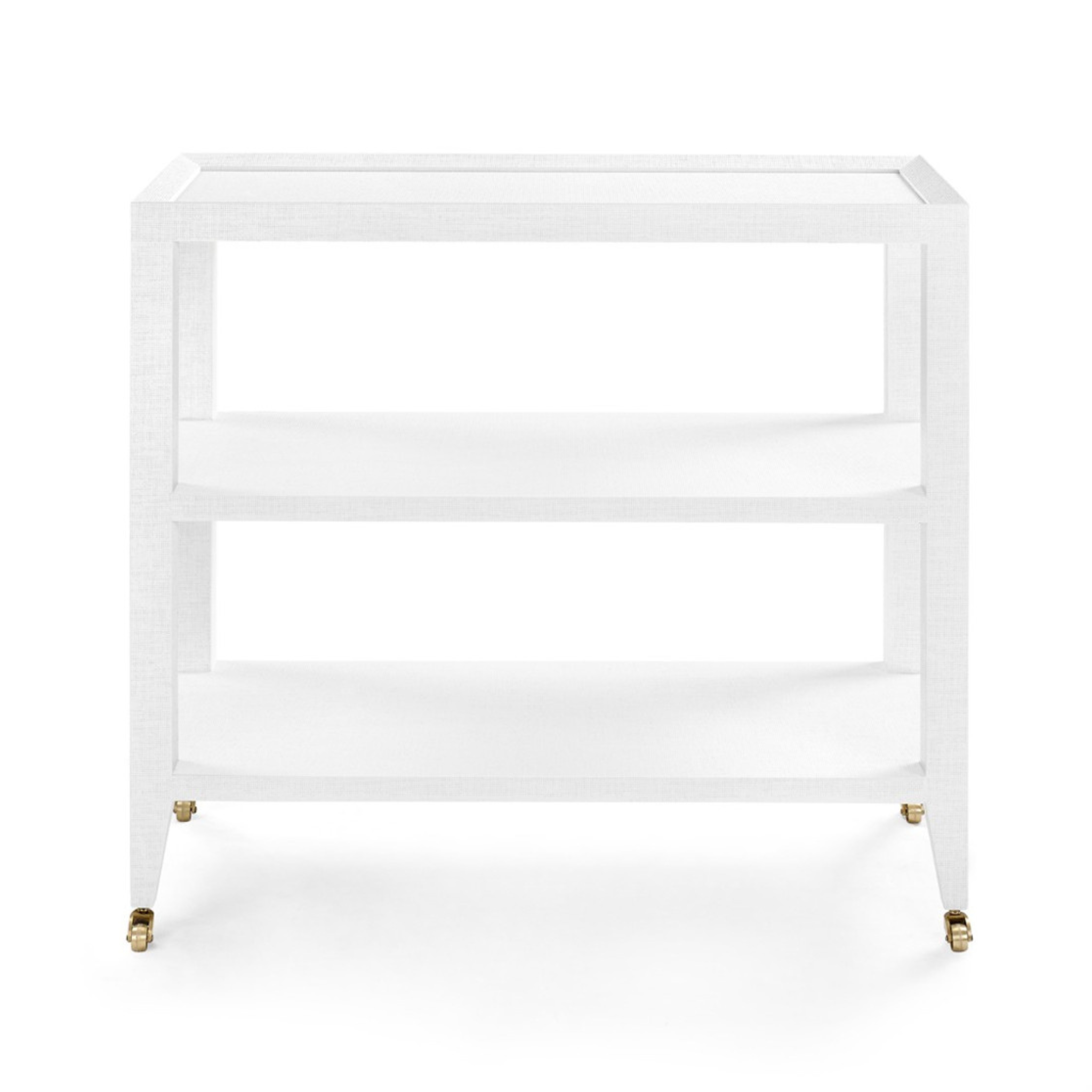 The Isadora Console Table brings timeless elegance and refined versatility to your home. Wrapped in lacquered grasscloth and finished with polished brass wheels, this piece offers a subtle nod to the golden age of entertaining. Its clean silhouette and stacked shelves create the perfect balance between sophistication and function.