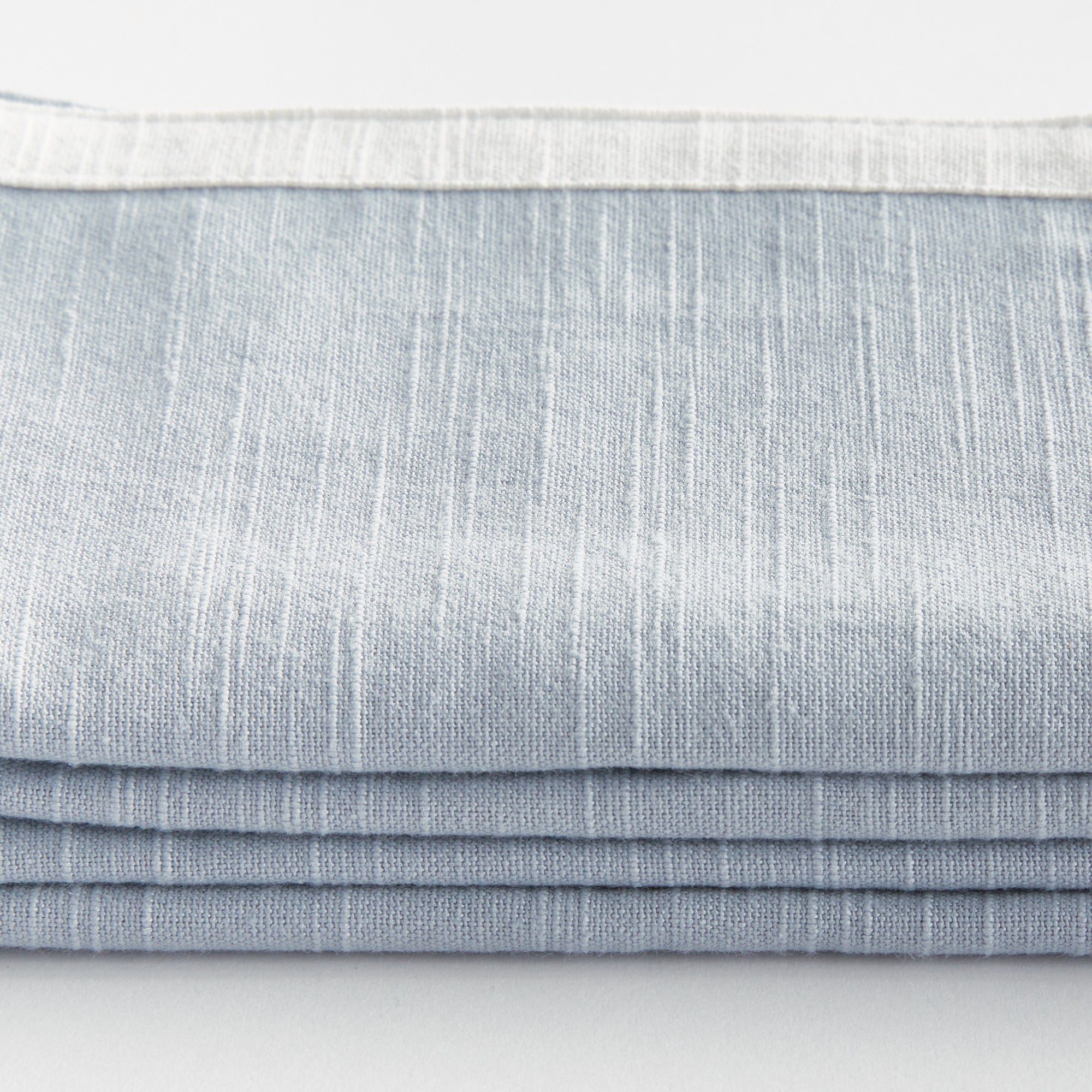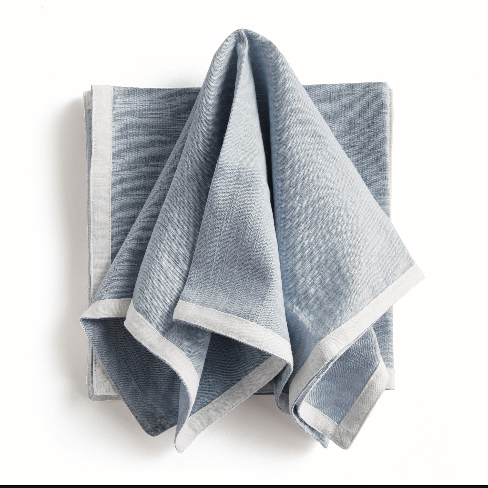 The Paige Dinner Napkins bring a refined yet relaxed touch to any table setting. Woven from 100% cotton in a cool, washed blue with crisp white trim, they strike the perfect balance between classic and coastal. Beautifully tied with grosgrain ribbon, this versatile set transitions effortlessly from casual lunches to elegant evening dinners.