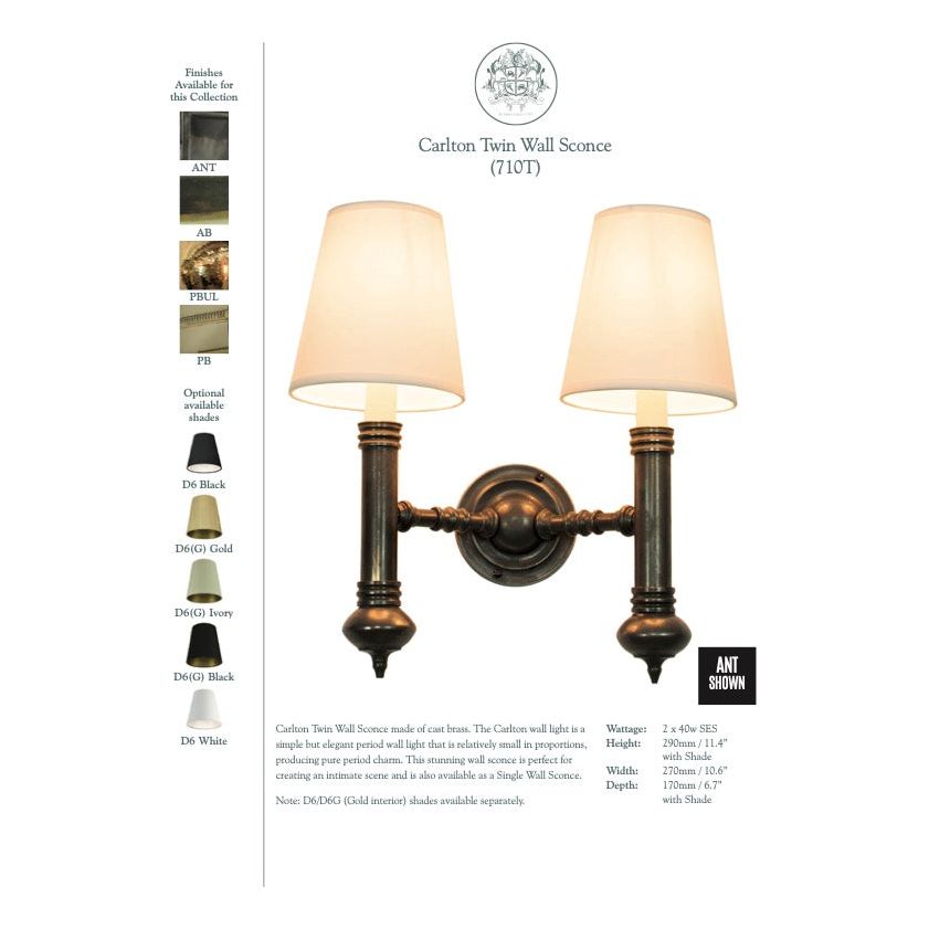 Offered in multiple finishes with optional shade selections, this versatile wall light adapts easily to traditional, heritage-style, or transitional spaces. Also available as a single-arm sconce, the Carlton family provides flexible styling options for every setting.
