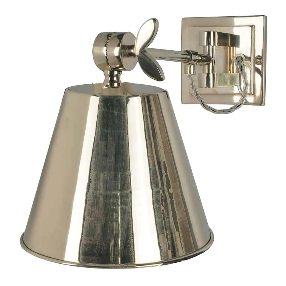 There’s a reason ocean liner lighting has never gone out of style. The Library draws on the Deco-era fixtures of the SS Columbus, circa 1926 — heavy machined brass, a pivoting arm that moves exactly where you aim it, and the kind of weight in your hand that tells you this is the real thing. Handcrafted in England by The Limehouse Lamp Co.