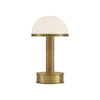 A glowing little companion wherever light is needed, the Promenade Brass Cordless Table Lamp. adds warmth and charm without the hassle of a cord. This petite piece features a polished brass finish paired with a glossy white glass cap, giving it a soft, golden glow when lit. The discreet power button and battery-life indicator are cleverly located on the side of the base, making function feel effortless. At just over 10 inches tall, it’s the perfect addition to shelves, consoles, or tabletops where ambient light—and freedom of placement—make all the difference.