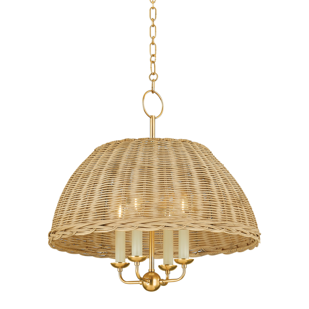 - Finish: Aged brass with natural rattan