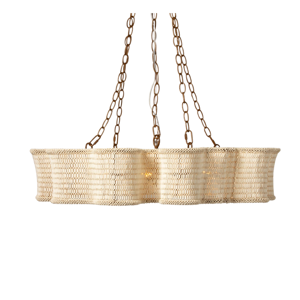 The Palmer Beaded Chandelier brings soft structure and understated elegance to a room, blending natural wood beads with a warm, timeworn metal finish. Its low, sculptural profile makes it especially well suited for dining spaces, bedrooms, or layered living areas where visual interest is desired without overwhelming the space.