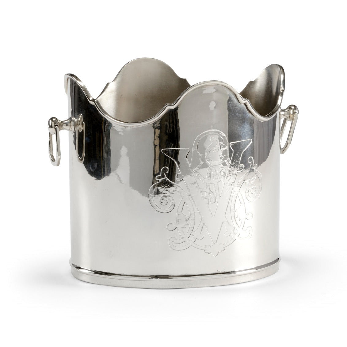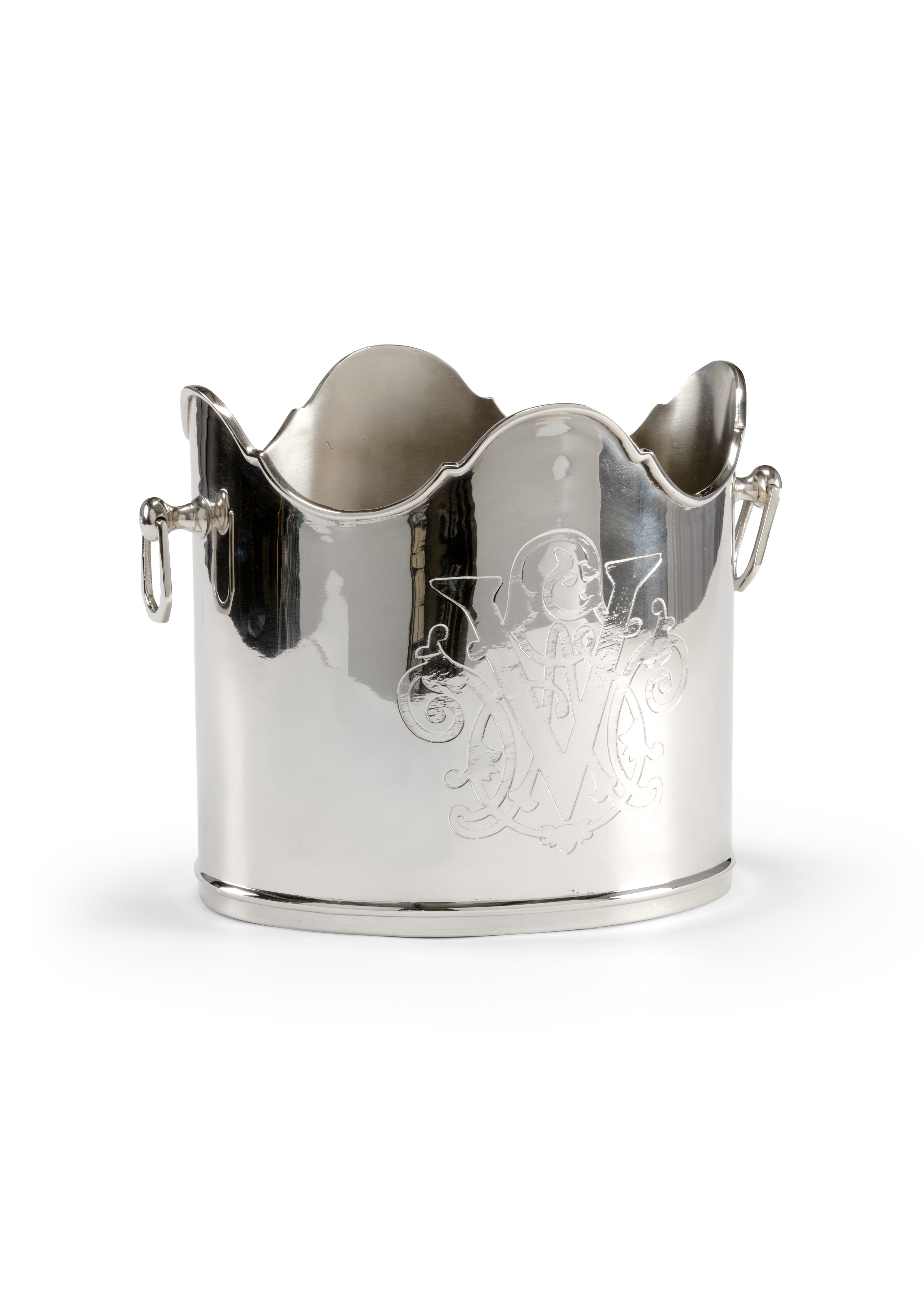 Crafted in solid brass and finished by hand, the Vanderbilt Beverage Chiller brings timeless elegance to any bar, sideboard, or dining table. Its sculptural scalloped rim and classic ring handles are inspired by traditional English entertaining pieces, offering both beauty and function for everyday use and special gatherings alike.
