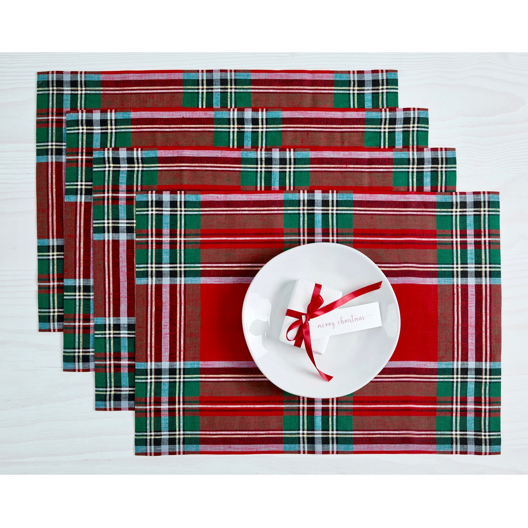 Bring festive warmth to your table with our Madras Holiday Plaid Placemats. Crafted from 100% pure linen, their cheerful red plaid evokes the comfort of a classic flannel blanket — perfect for holiday gatherings or cozy winter meals.