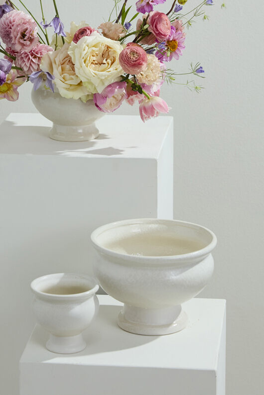 Available in three sizes, the Dawson Compote offers endless styling possibilities. Whether used for foam-free floral design, as a centerpiece, or to bring understated charm to your home, this piece blends seamlessly into any décor style.