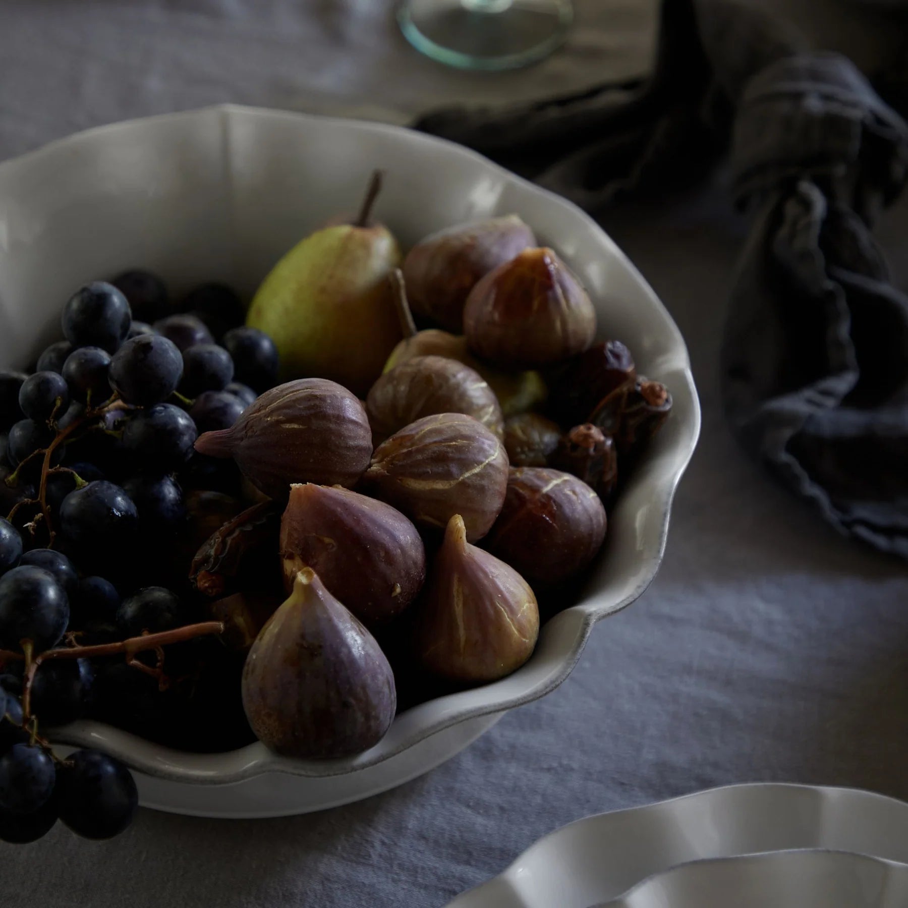The Rosa Serving Bowl brings a soft, feminine touch to the table with its glossy glaze, scalloped contouring, and delicately hand-painted rim. Crafted from fine stoneware in Portugal, it layers beautifully with other Costa Nova pieces and adds an elevated yet effortless look to everyday dining.
