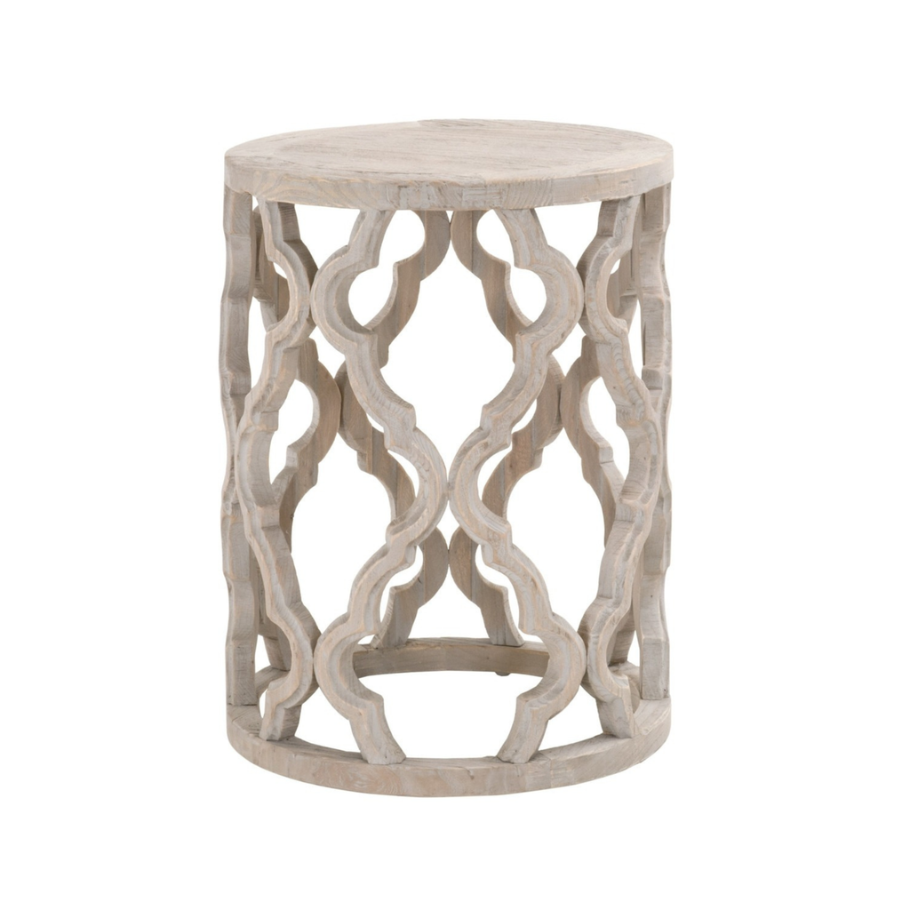The Clover End Table in Smoke Gray Elm makes a striking impression with its intricate carved base and sculptural form. Crafted from reclaimed elm wood, it blends organic texture with a bold silhouette, creating a versatile accent that brings character to any space.