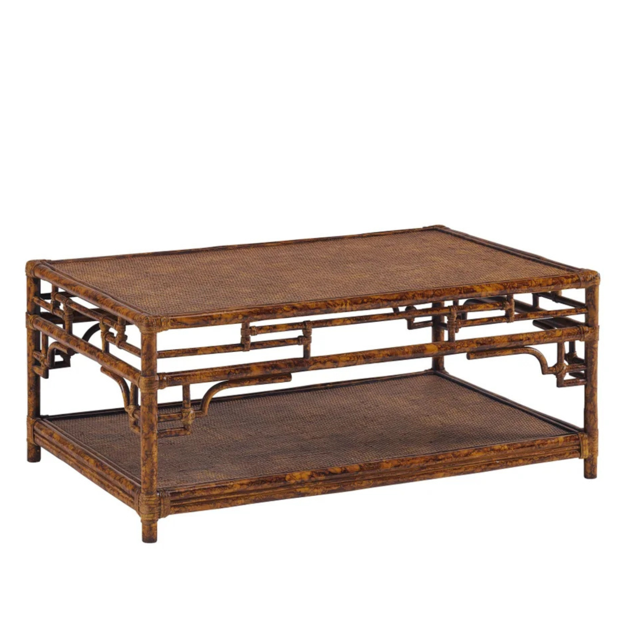 Beautifully balanced and rich in detail, this piece layers easily into coastal, island, or traditionally styled interiors. Its bamboo-inspired frame and woven rattan lower shelf offer both texture and function, creating a coffee table that feels refined, versatile, and naturally elegant.