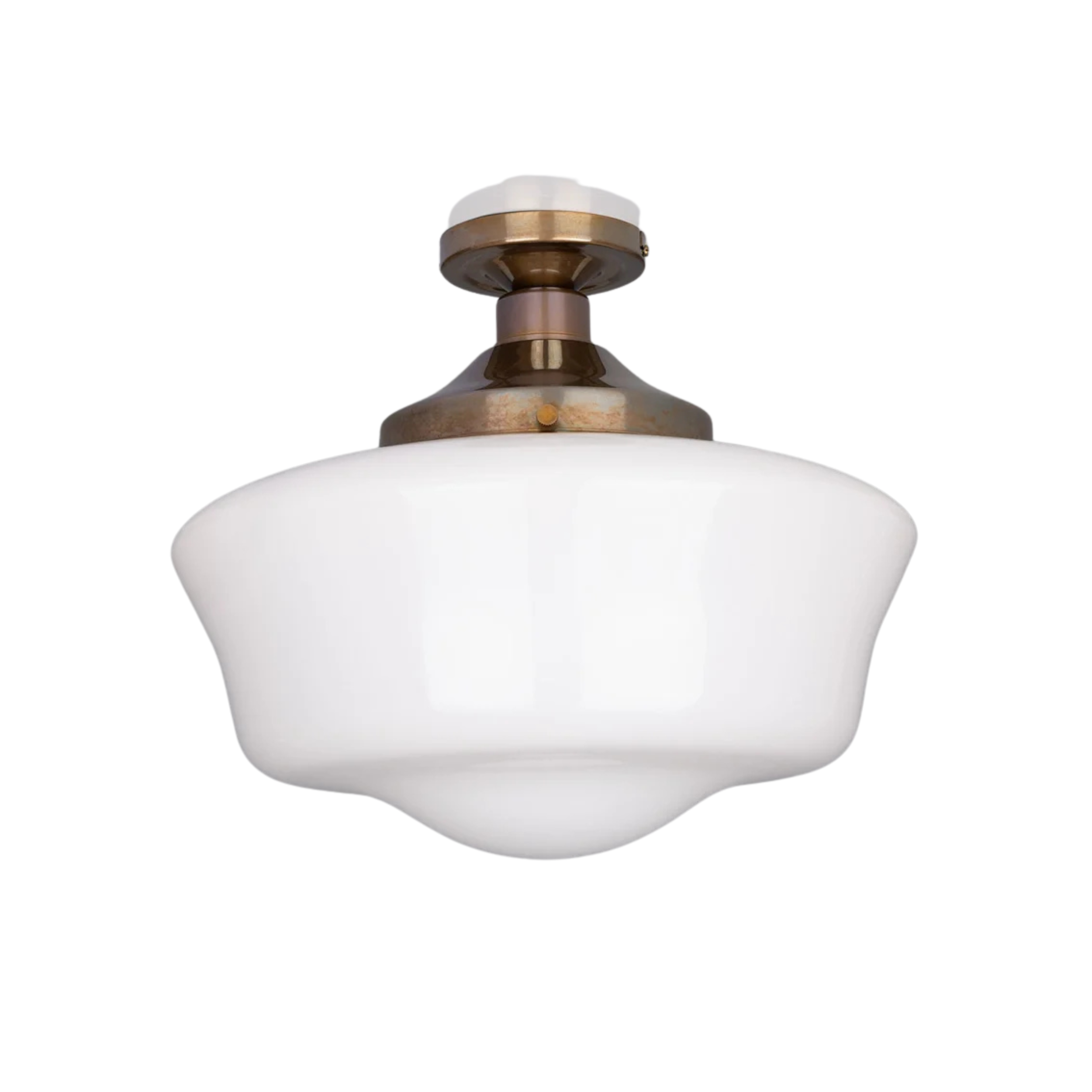 Handcrafted in Ireland with a brass and opal glass construction, this ceiling light creates a warm, ambient glow ideal for welcoming settings. Pair it with a warm bulb for an inviting atmosphere that feels both comfortable and refined.