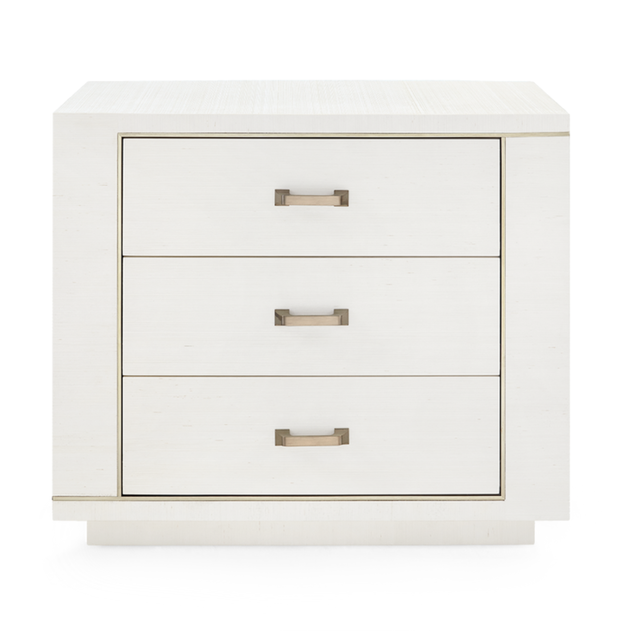 The Ethan Nightstand in Sand White brings refined texture and sculptural detail to the bedroom. Finished in hand-lacquered grasscloth and accented with asymmetrical satin bronze hardware, it strikes a balance of elegance and modern edge. Compact yet versatile, it serves beautifully as a nightstand or as an accent table in a living room or study.