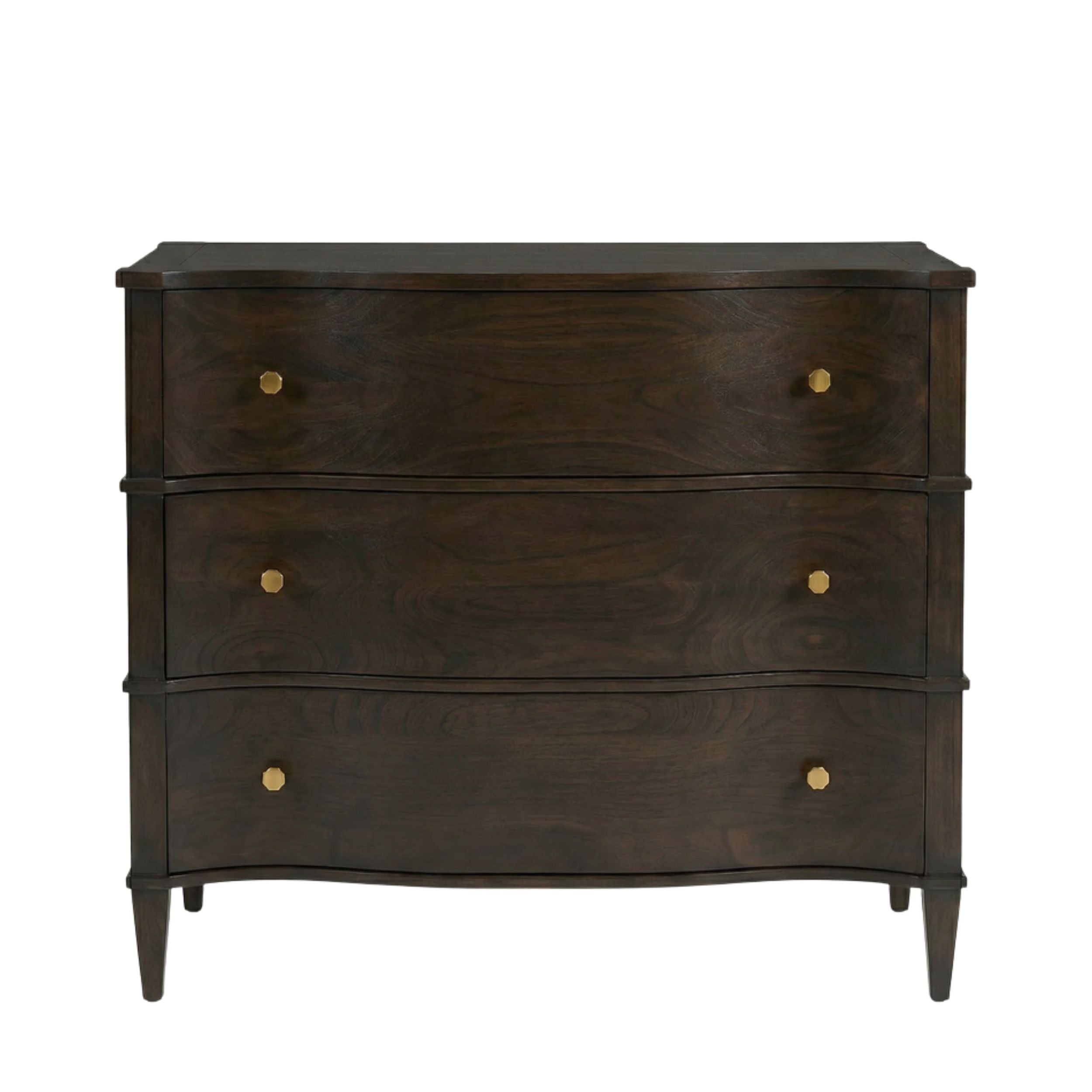 The James Chest is a refined take on a classic European form, defined by its gently curved drawer fronts, tapered legs, and tailored presence. Its proportions feel substantial yet elegant, making it a timeless choice for bedrooms, living spaces, or anywhere a sophisticated storage piece is needed.