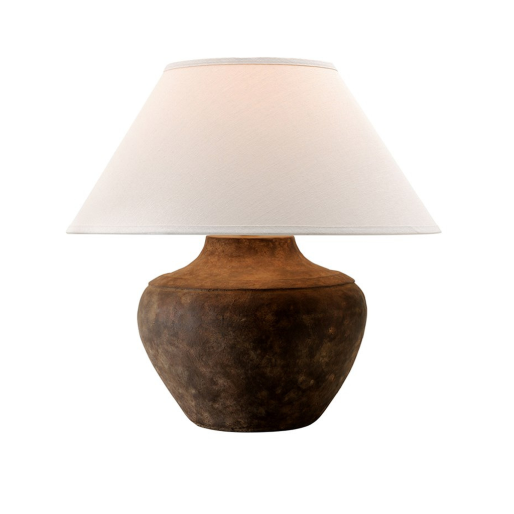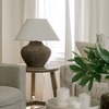 The Calabria Sienna Table Lamp brings warmth and quiet character to living rooms, bedrooms, and reading corners throughout the home. Its softly rounded ceramic base is finished in a rich sienna tone with natural texture, creating an inviting presence that feels both grounded and timeless. Paired with an off white linen empire shade, it casts a relaxed, even glow ideal for everyday living.