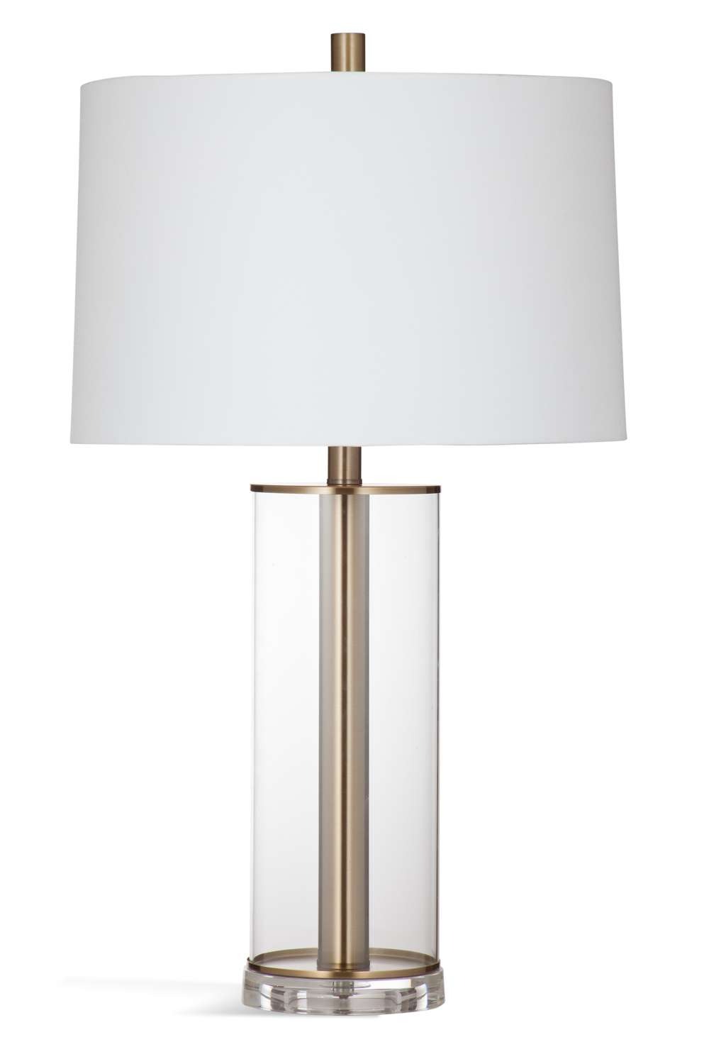 The Ares Table Lamp combines refined simplicity with luminous detail. Crafted of clear glass with polished brass accents, its transparent base creates a light, airy presence while lending timeless elegance to any room.