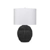 The Clifton Table Lamp draws inspiration from the celestial landscape, with perforated patterns reflecting the craters, mountains, and seas of the moon's surface. Artfully crafted by skilled artisans, each lamp features bold, decorative patterns and is topped with a white linen drum shade and acrylic ball finial. Available in Matte Black or Matte White, no two lamps are identical.