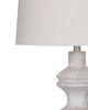 The Krishina Table Lamp blends timeless elegance with rustic appeal. Crafted of resin with a whitewashed finish, its baluster-shaped base evokes the character of antique turned wood while offering modern durability. The textured oatmeal fabric shade gently diffuses the light, creating a soft, inviting glow.
