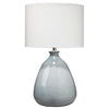 The Maisette Table Lamp features a ceramic base enhanced with a stunning reactive glaze in a soft blue, creating a cloudlike effect that makes each lamp unique. Handcrafted by artisans, the glaze ensures no two lamps are identical. A white linen drum shade complements the dreamy design, while a distinctive upside-down faux alabaster teardrop finial adds a final touch of elegance.