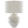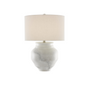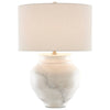 The McKenna Table Lamp boasts a marble-like texture, crafted from terracotta with subtle, artisan-applied patterning. Its sleek white surface, complemented by an off-white shantung shade, creates a sophisticated and understated presence in any space.
