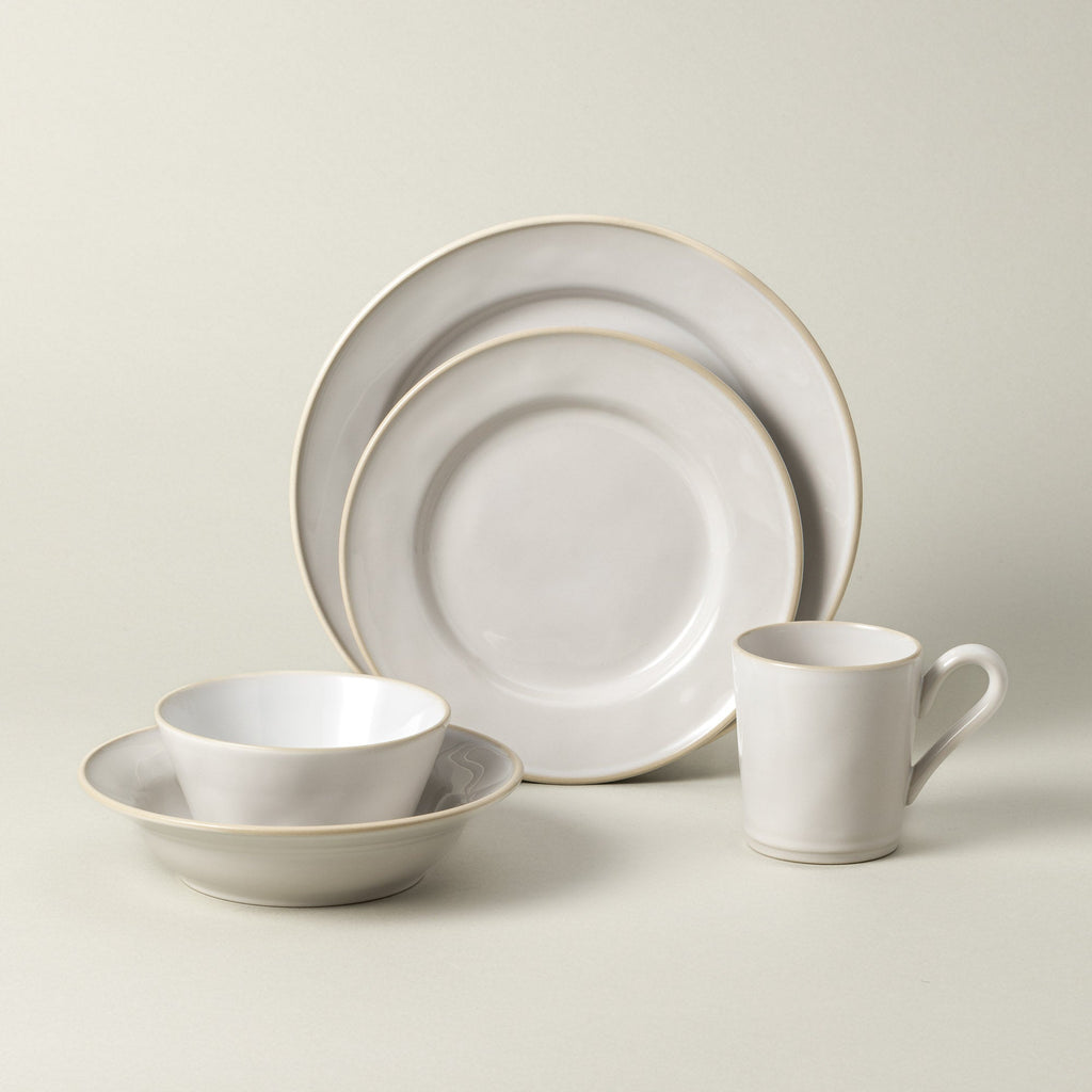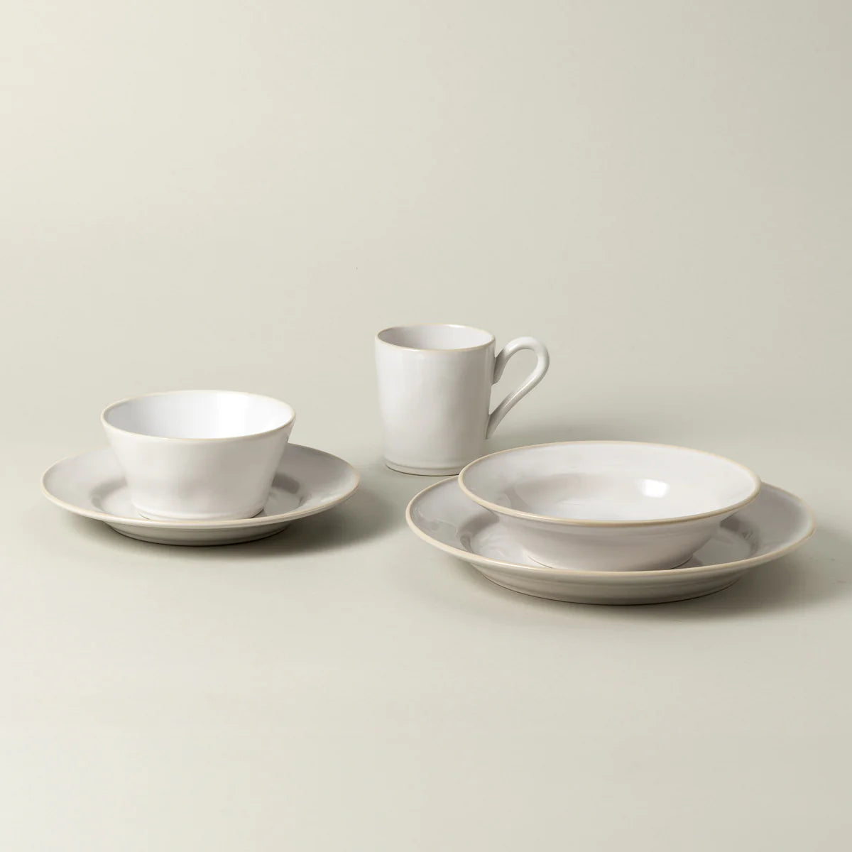 Crafted in Portugal from fine stoneware, the Beja 5-Piece Dinnerware Set brings a subtle European charm to the table. Each piece features a soft cream hand-painted rim—one of the defining details of the Beja collection—and the organic warmth that makes every setting feel personal.