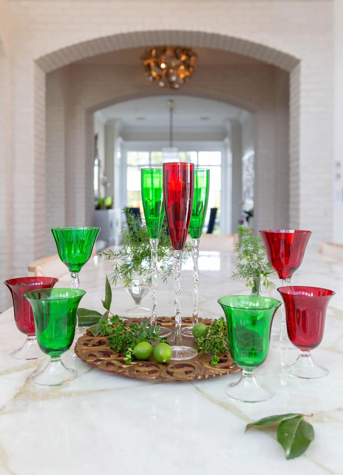 The Francesca Water Glass in Emerald brings a jewel-toned richness to your table. With its gracefully flared bowl and sculpted stem, it strikes the perfect balance between timeless elegance and everyday functionality. The deep red hue adds warmth and depth, making every gathering feel more celebratory.