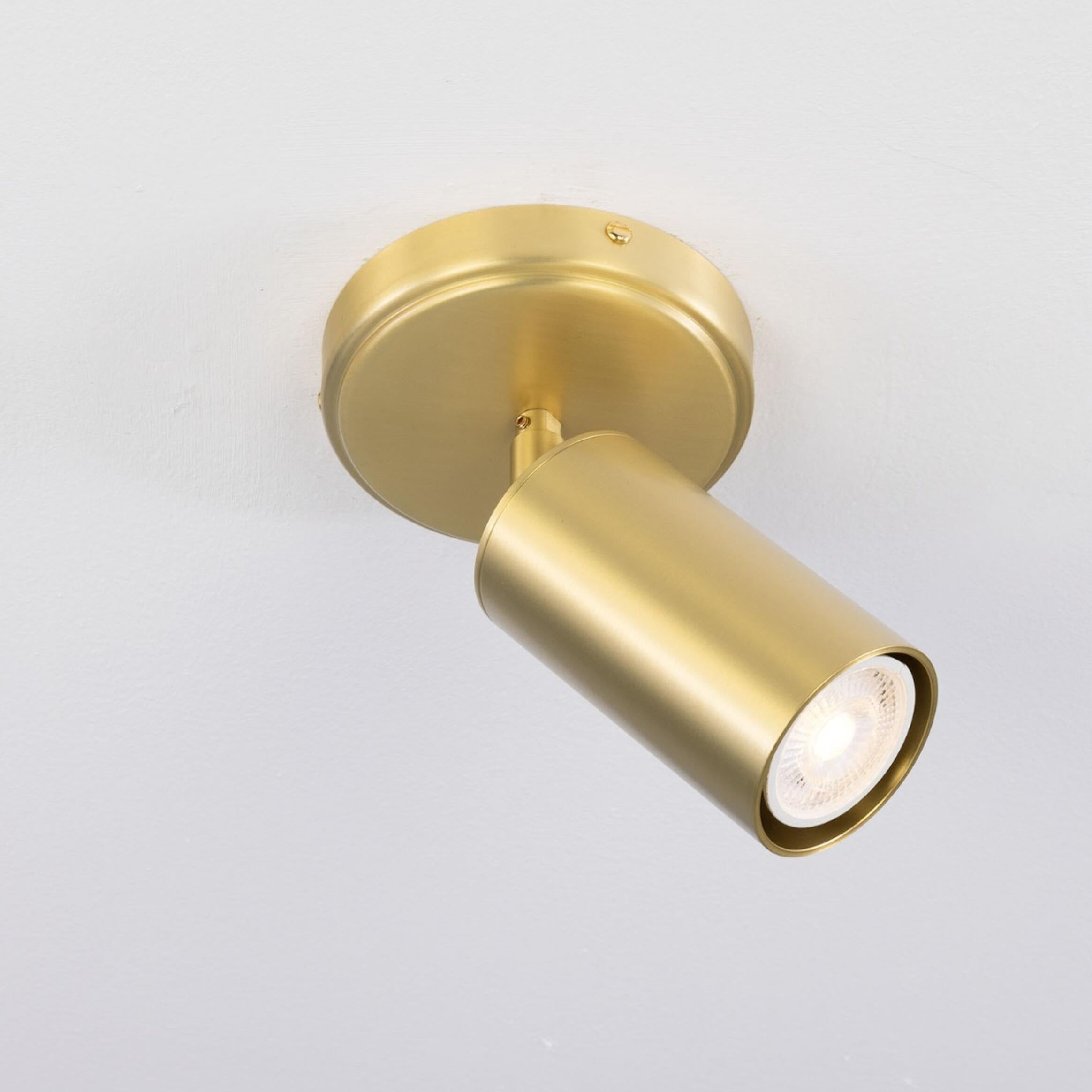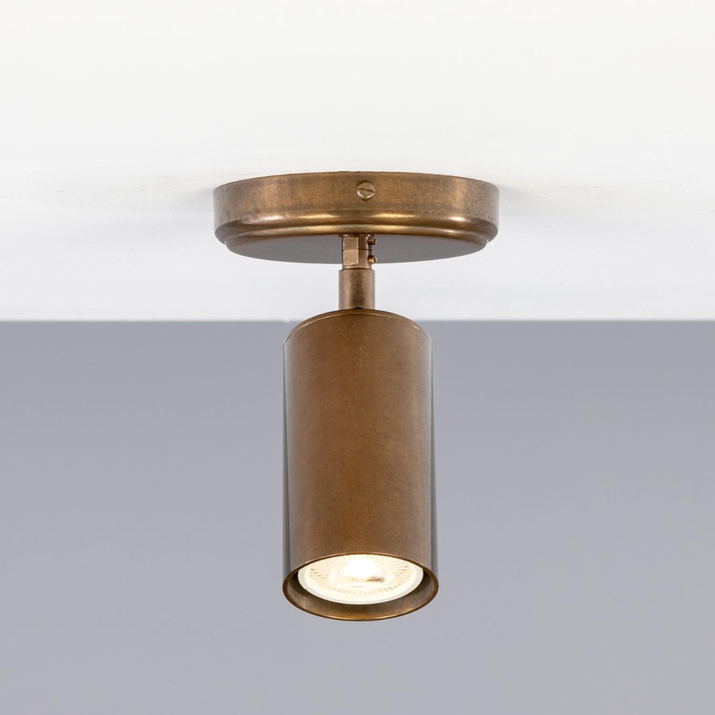 Combining form and function, the Evanston Directional Brass Ceiling Spotlight offers a refined way to highlight artwork, hallways, or architectural features. Handcrafted from solid brass, this spotlight’s cylindrical head can be adjusted to direct light precisely where you need it.