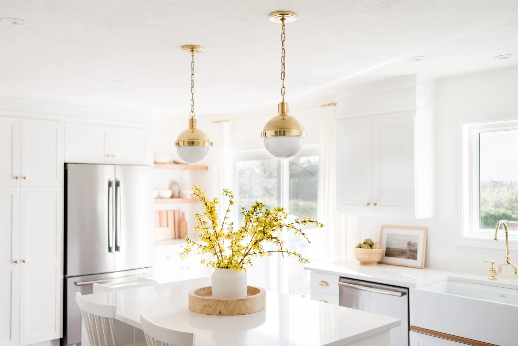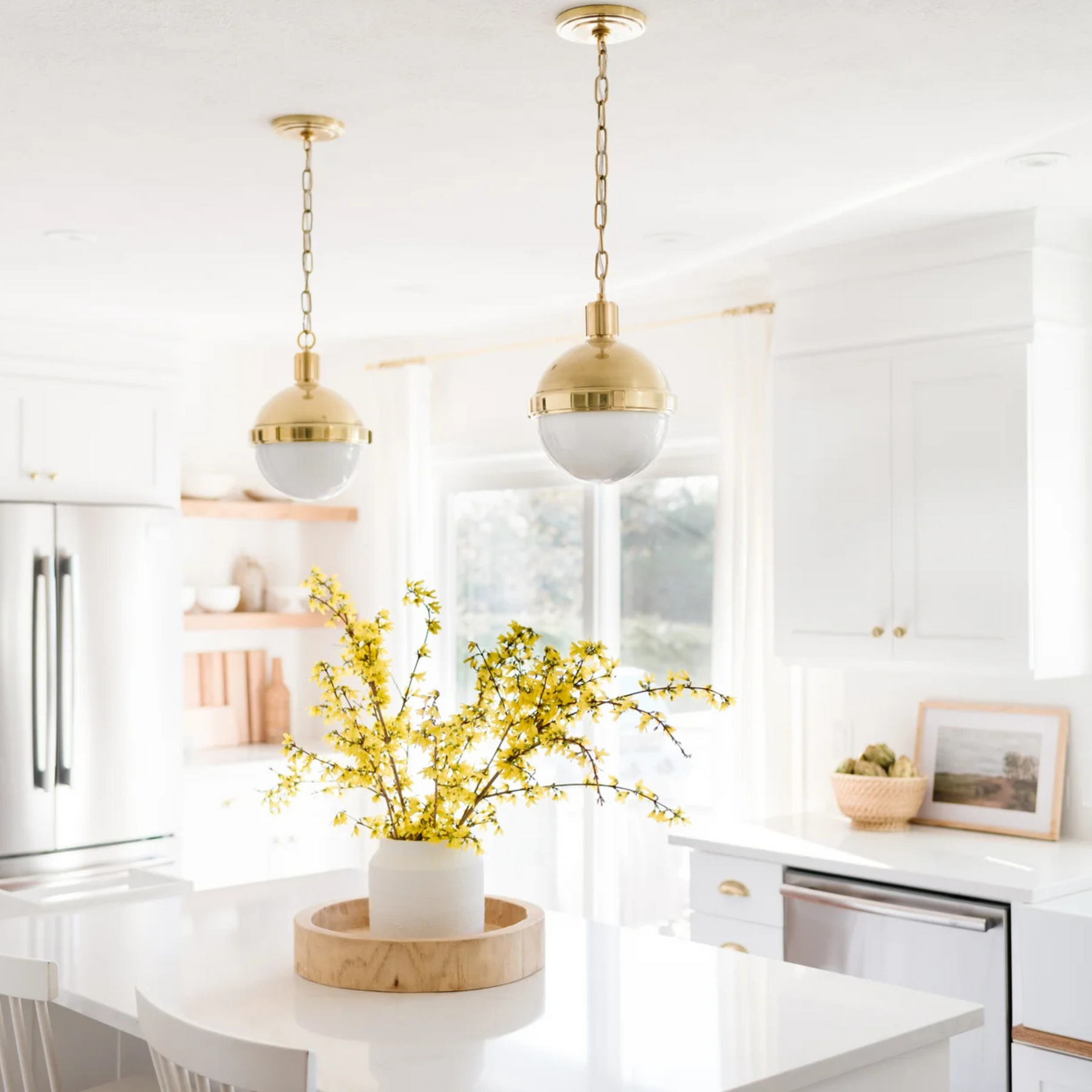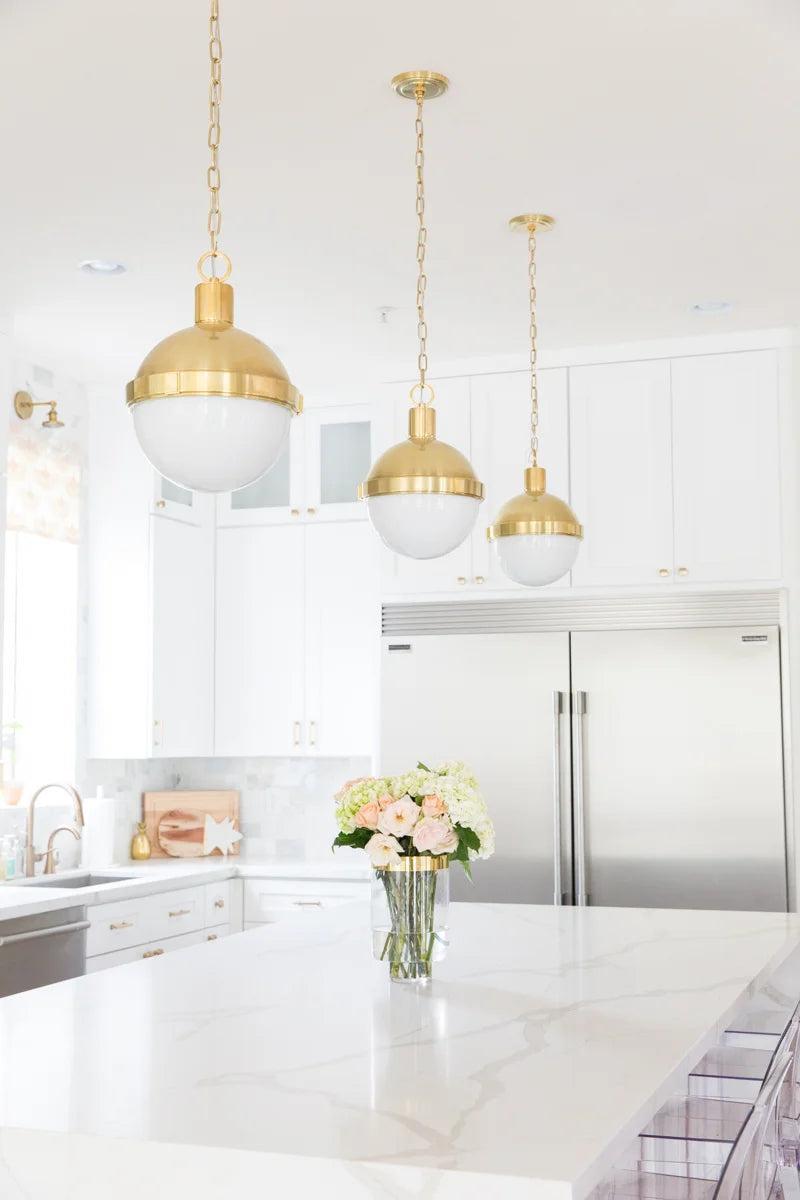 Available in three sizes, this pendant works beautifully as a single statement or grouped in multiples over an island. The clean silhouette and warm finish allow it to layer effortlessly into coastal, traditional, and modern cottage interiors.