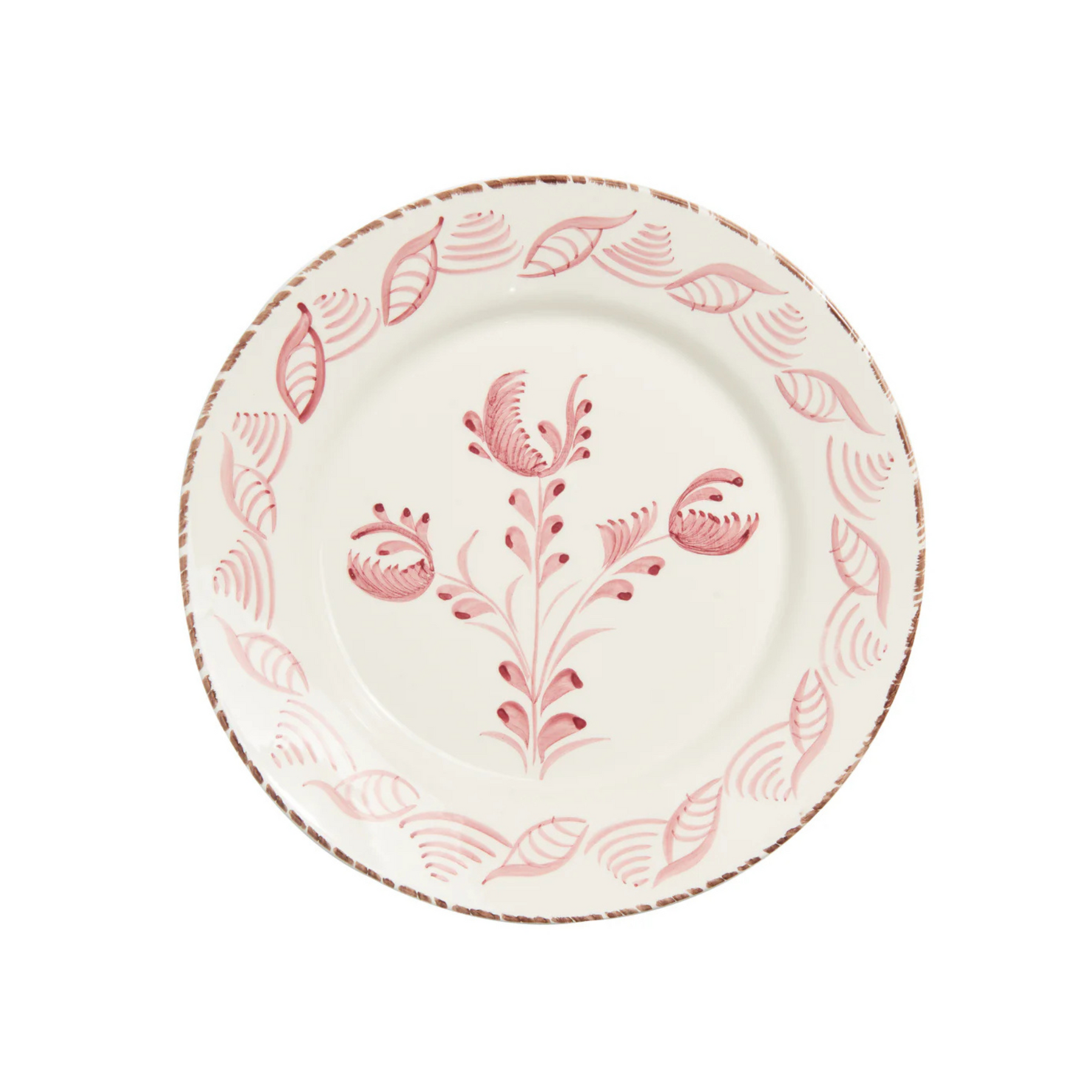 Hand painted ceramic dinner plates in a pink and white floral and shell motif, designed to bring a soft, collected feel to your table. Made in Portugal, this pattern draws from traditional Talavera-style ceramics, blending delicate florals with subtle shell detailing for a look that feels both timeless and relaxed.