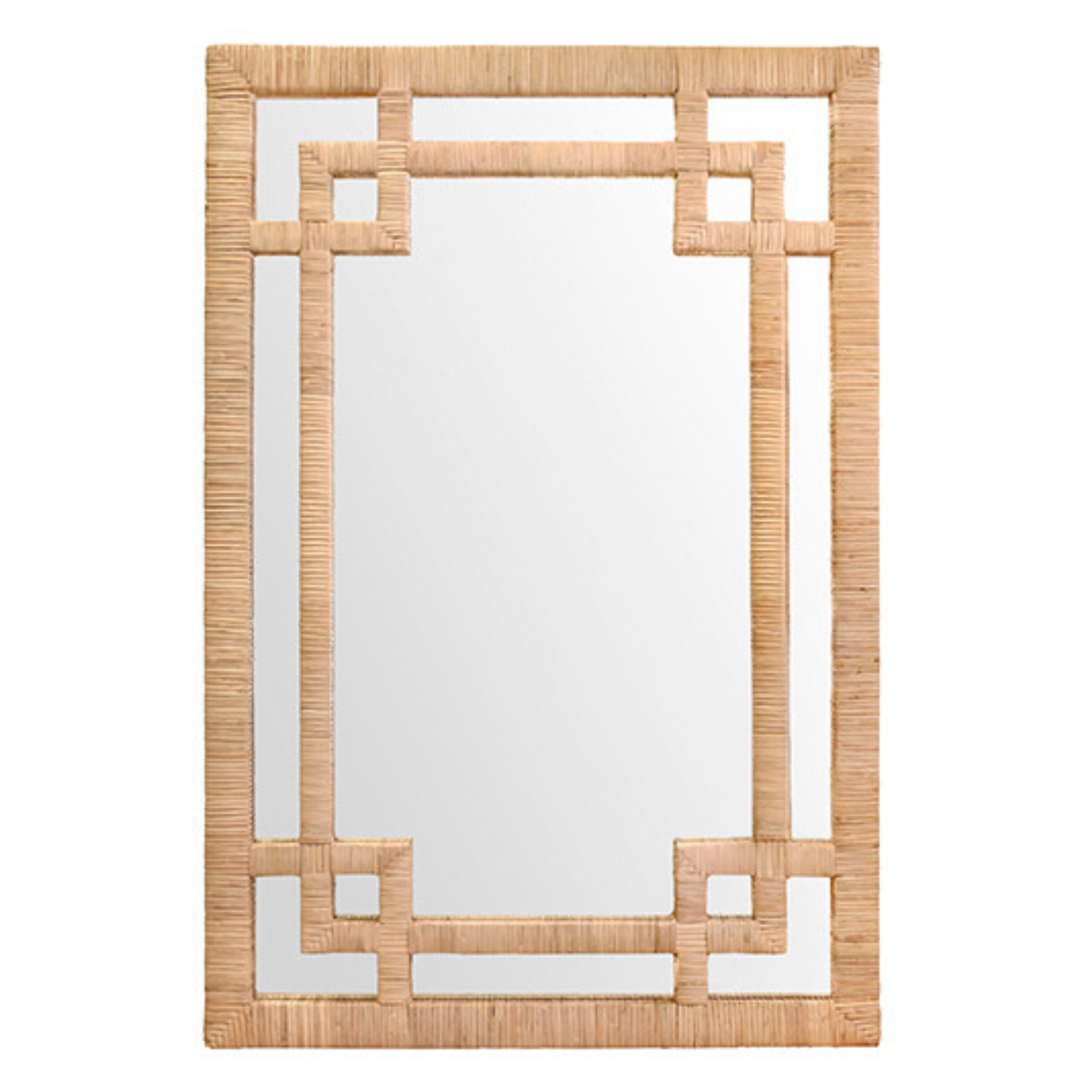 • Wrapped natural rattan frame with refined Greek key detail