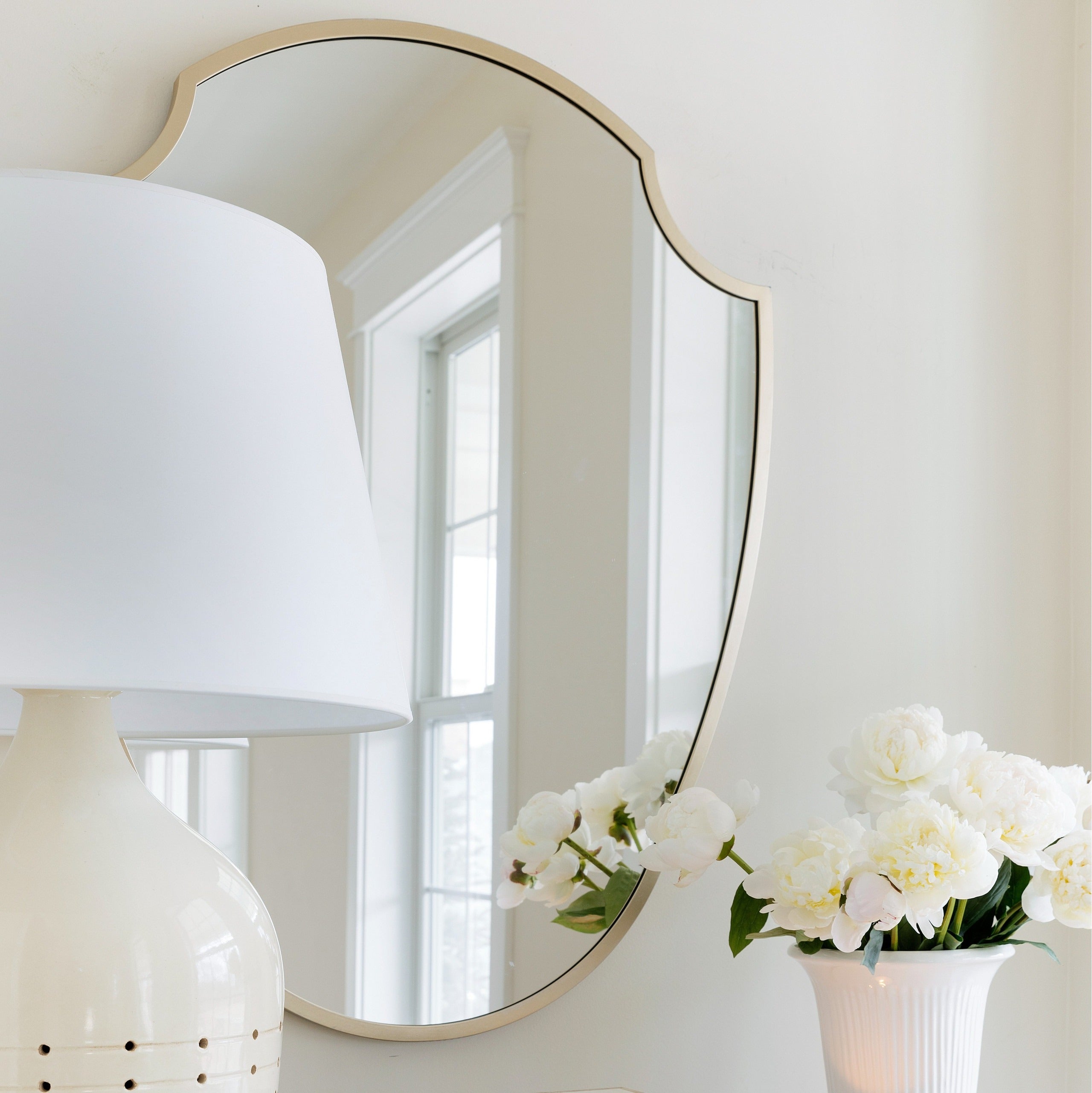 The clean metal edge and graceful shape make this mirror a timeless accent that complements both traditional and modern interiors. A subtle nod to heritage style, it’s perfect for layering warmth and luxury into your home décor.